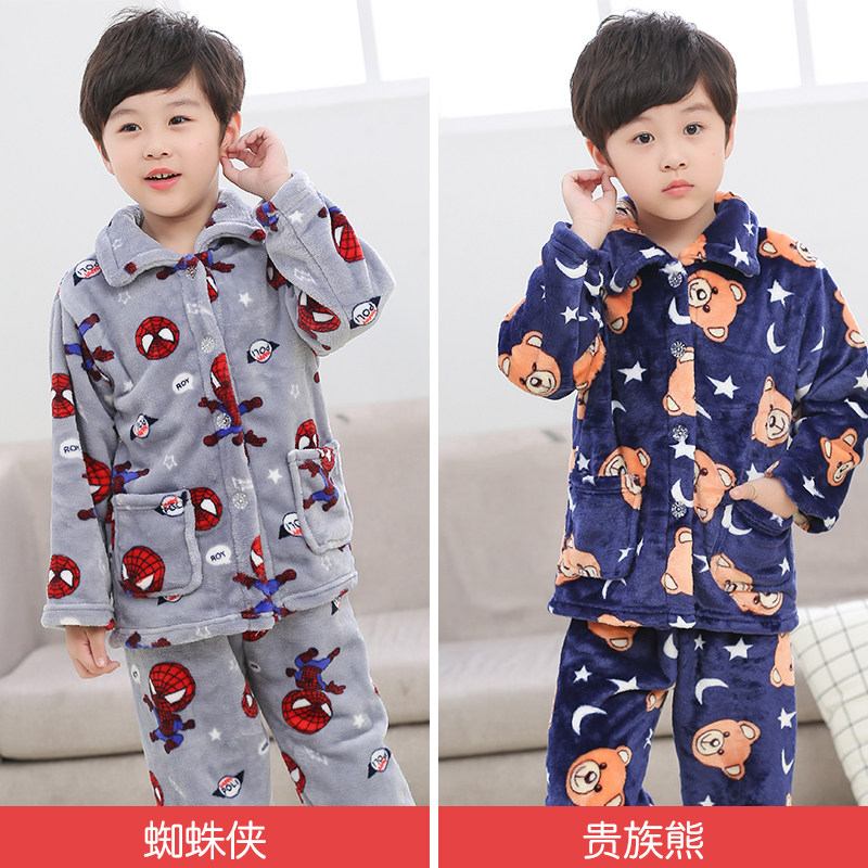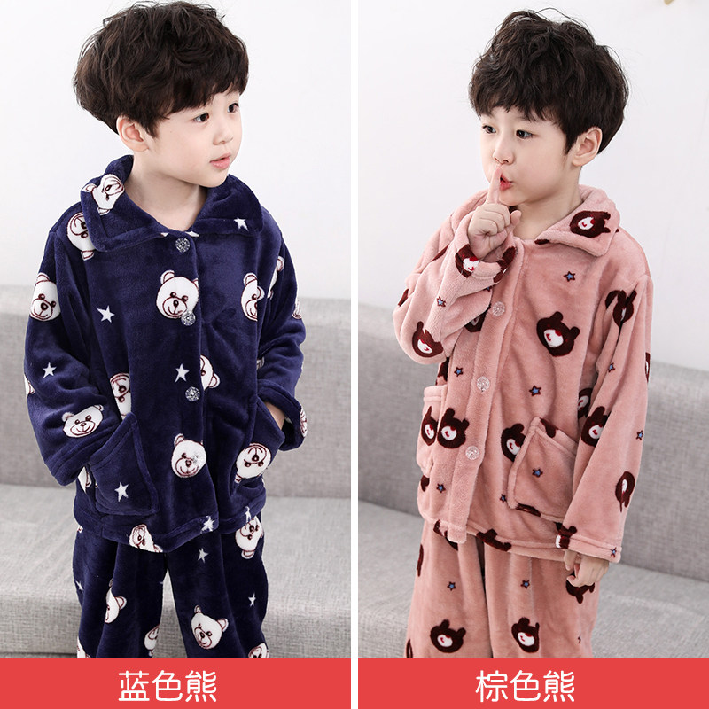 Осень-зима время года детские Французская пижамас на девочку детские на мальчика Домашняя служба девушка утепленный зима стиль мужской Детский коралловый бархат