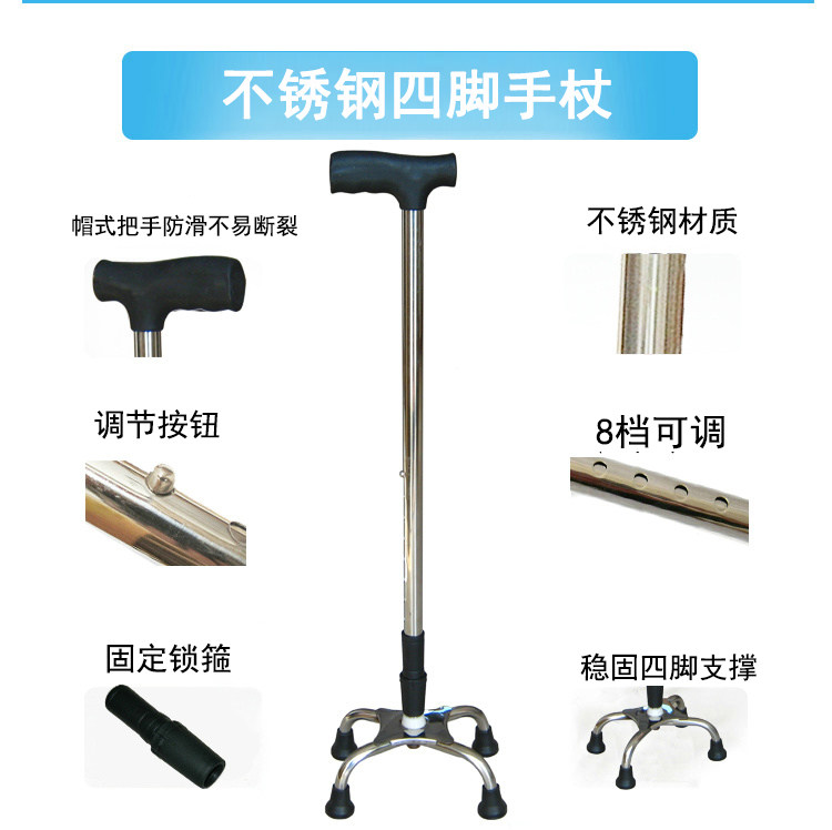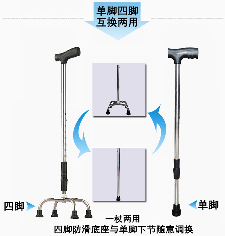 Нержавеющая сталь один Жир Четыре руки, чтобы изменить ручные палочки старика Cane Boots Телескопическая двухцелевая рука