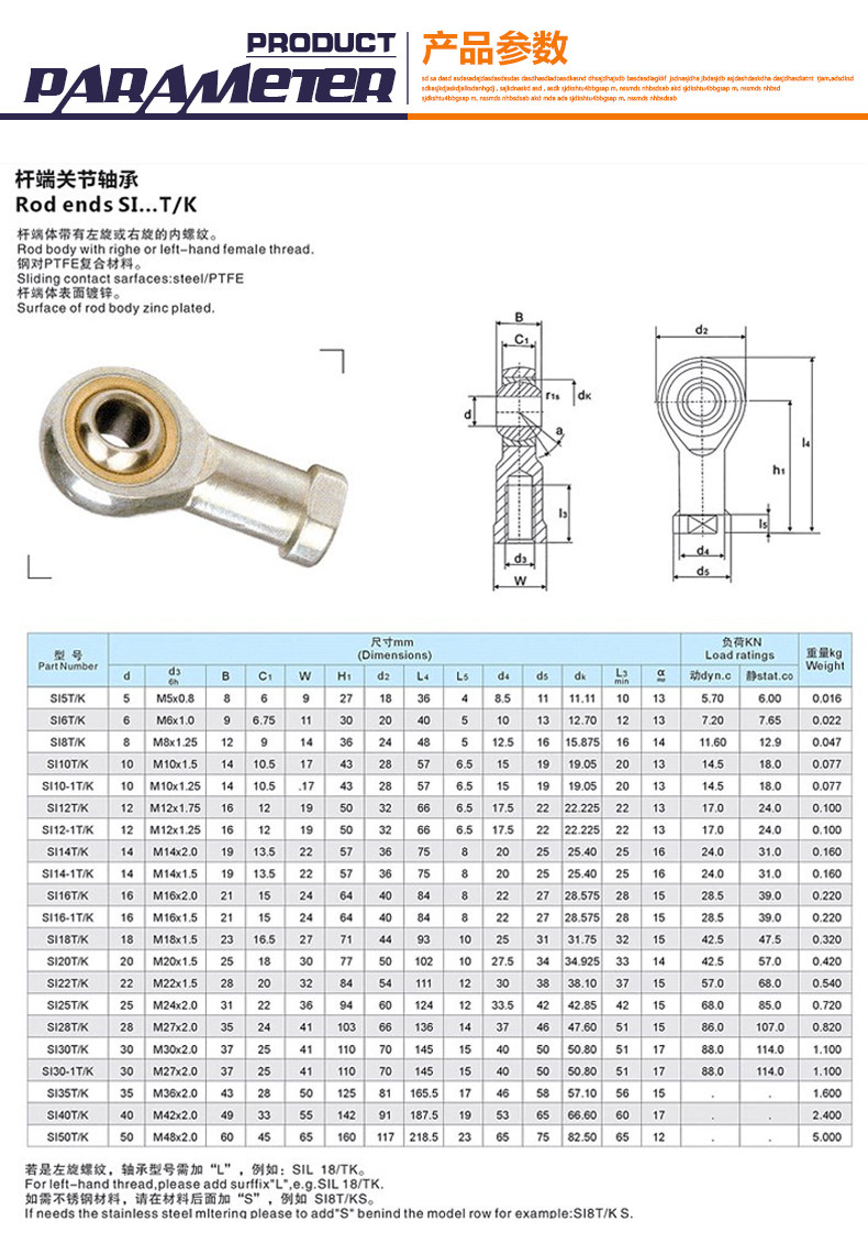 Рыбные глазовые стержень клеммные подшипники Si / SIL 6 8 10 12 14 16 18 20 22 25 28 30T / K