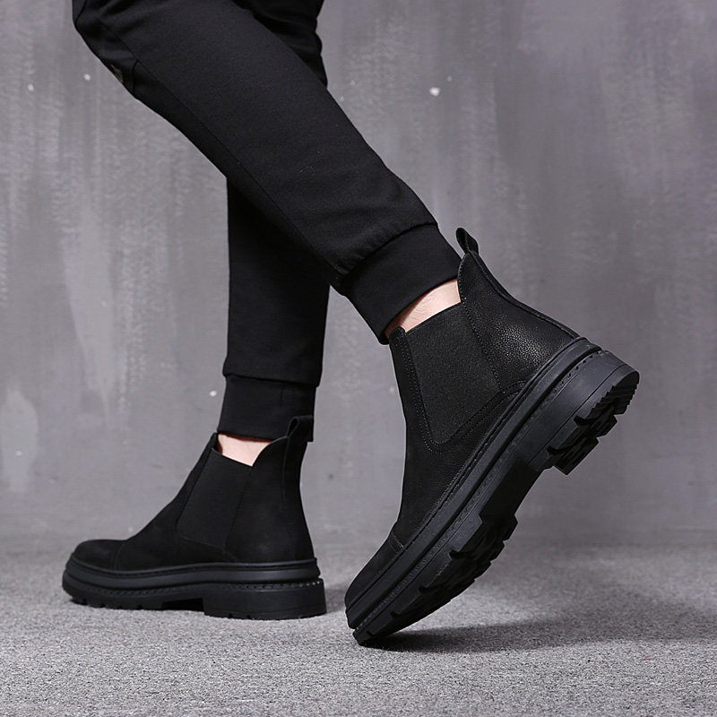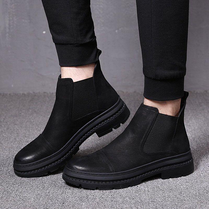 Косо мужской обувь модные демисезонный средней высоты мужской обувь для отдыха высокий кожаная обувь берцы мужской удерживающий тепло замшевый ботинки с утеплением винтаж