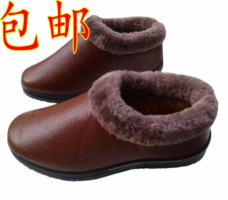 Зимний Средних лет мужские и женские водонепроницаемый замшевый ботинки с утеплением Мама ботинки с утеплением Мягкий нижний старик замшевый удерживающий тепло Кожа ботинки