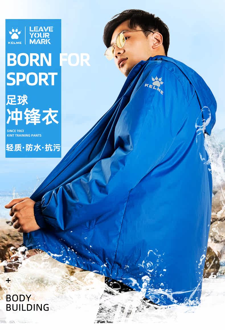 KELME Sports ветровка воздухопроницаемый Ветрозащитный водонепроницаемый куртка Плащ футбольный тренировочный жакет Куртки