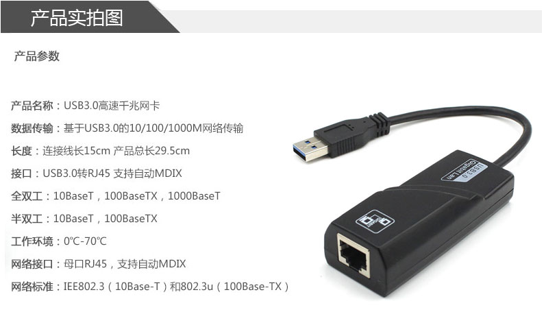 Соответствие Спецификацией USB 3.0, скорость передачи высокая 5 Гбит / с, законченные полностью Воспроизвести производительность Gigabit Network Card