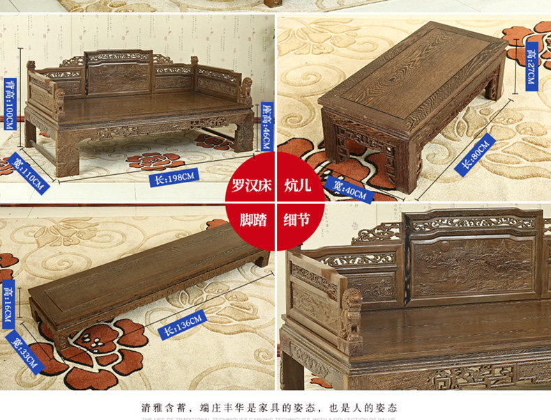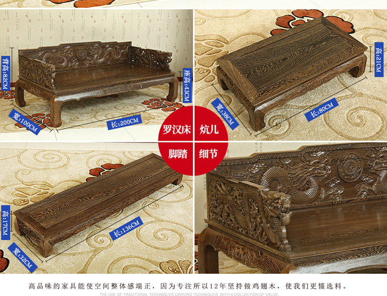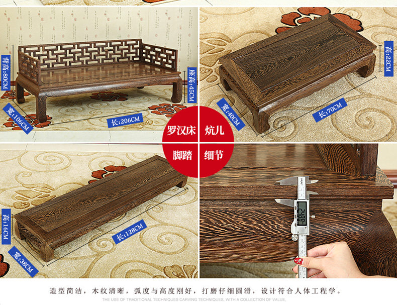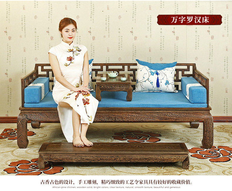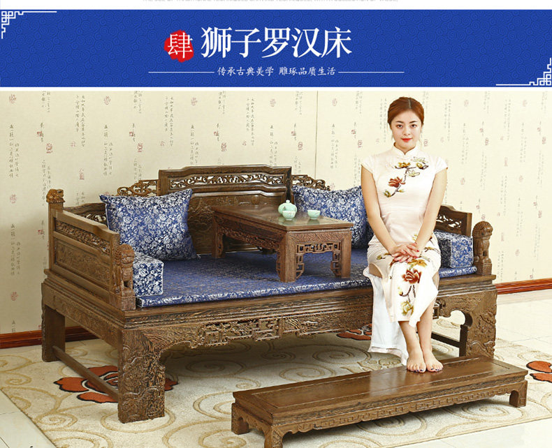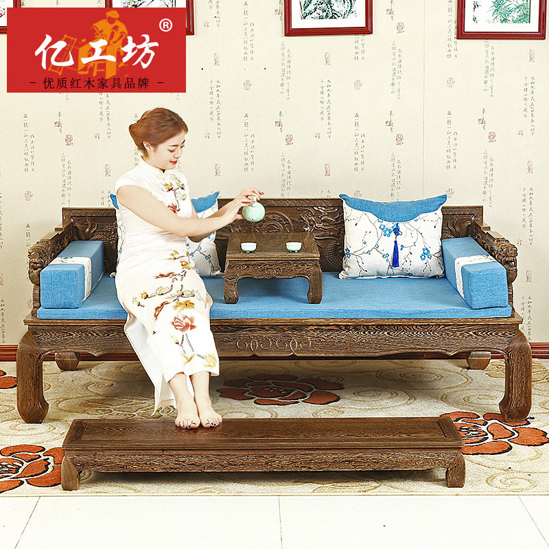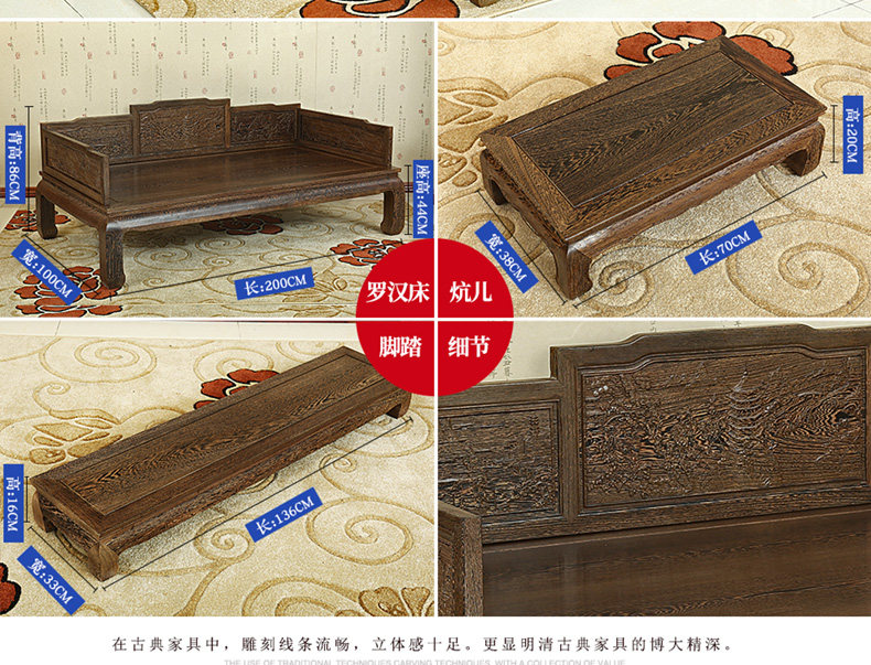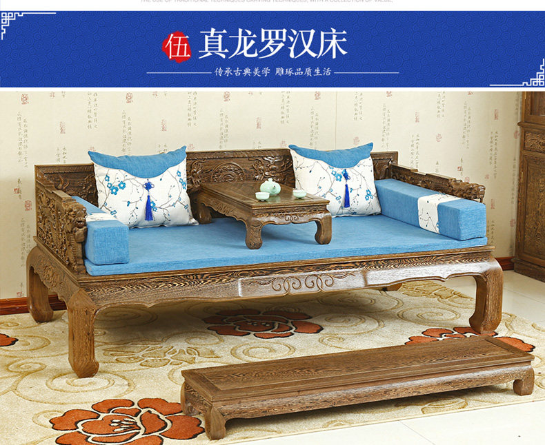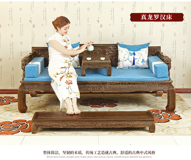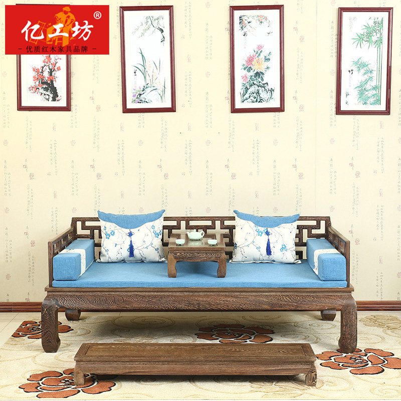 Кровать архат из массива дерева красный Мебель из дерева новый Китайский древний классический Венге 3 накладки диван копия Древняя резная кушетка для архата