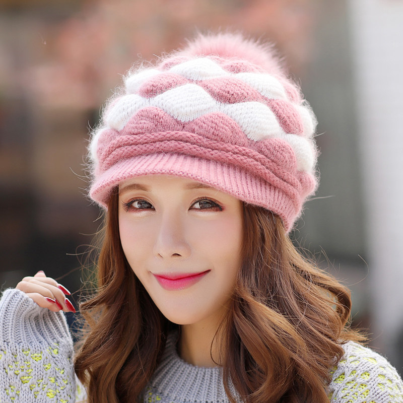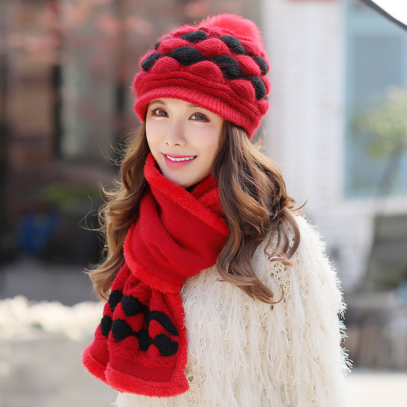Мех кролика Шляпа женское зимнее ухо шерстяная пряжа Крышка утка языка трикотажный корейская версия Дикий новая коллекция Зимняя женщина шапка шарф два наборы