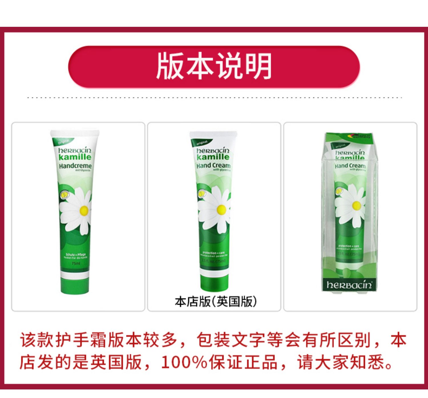 Herbacin He Ben Qing Xiaoli Крем для рук 75 мл Шланг Увлажняющий и увлажняющий омоложение доставки классический Ромашка