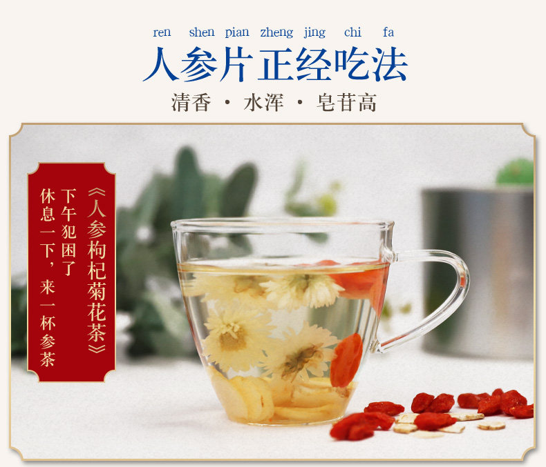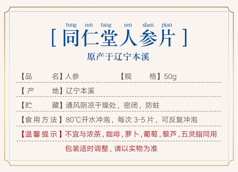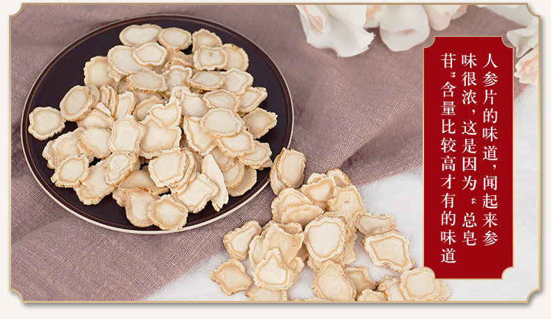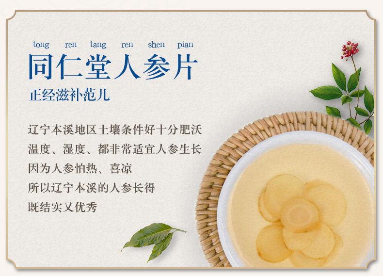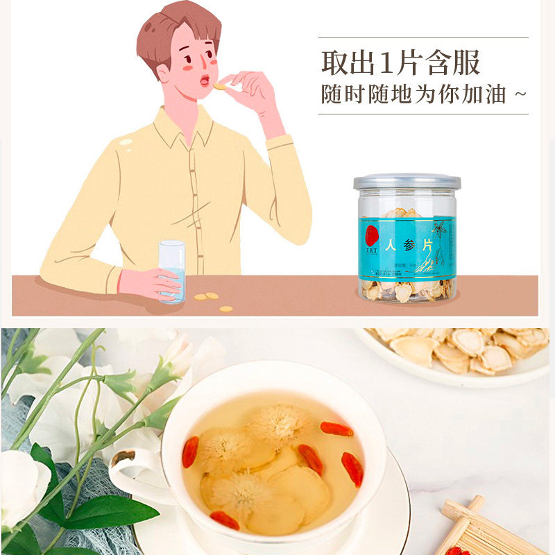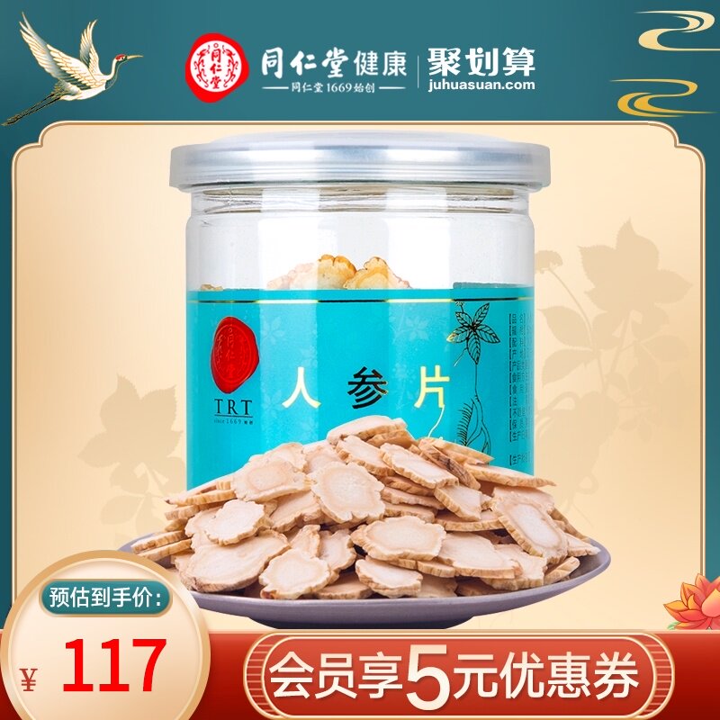 Пекин Тунрентан Ломтики женьшеня 50 г Ломтики женьшеня белый Продолжительность участия белый Ломтики горного женьшеня, пропитанные водой и высушенным на солнце женьшенем