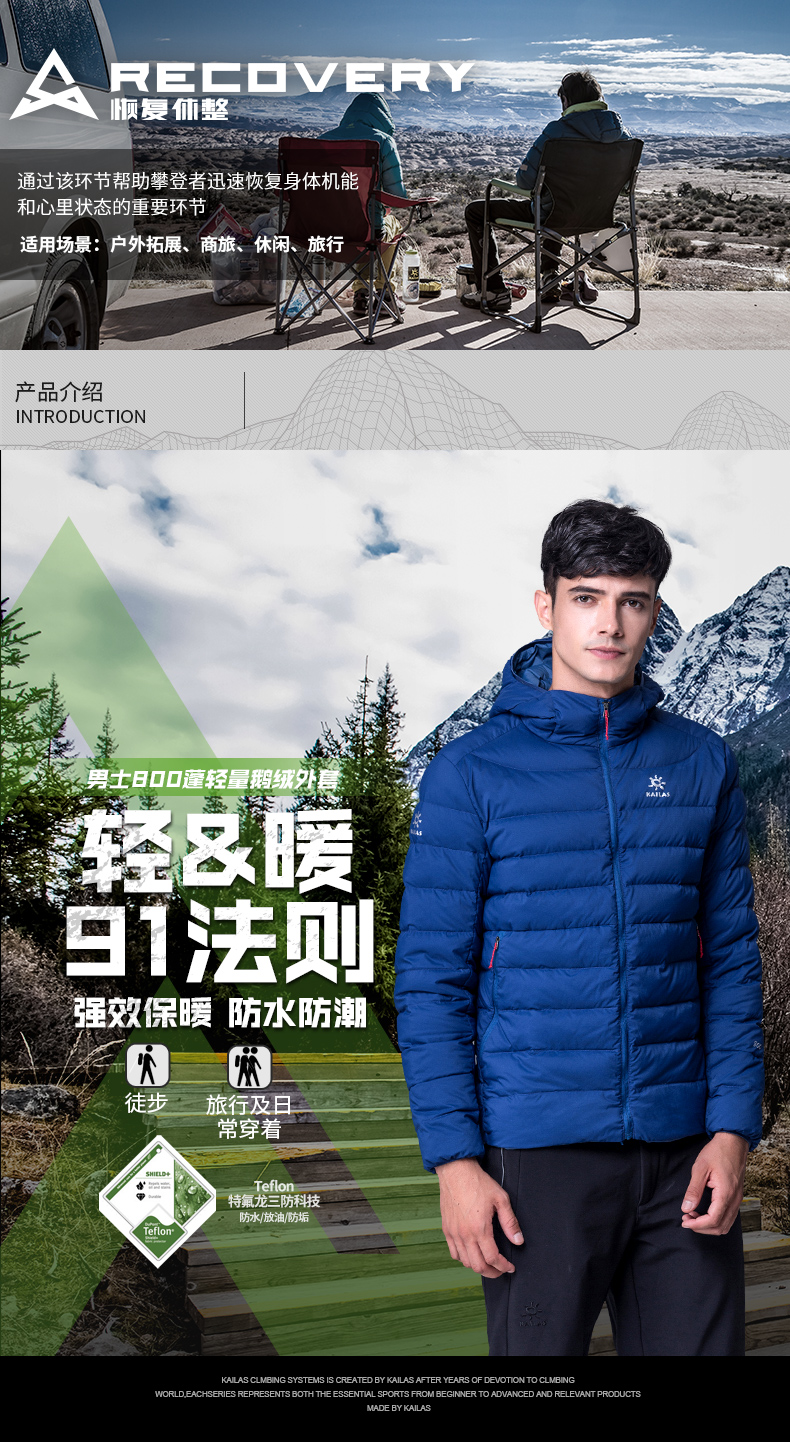 Кайлас Открытый мужской стиль капюшон Гусиный пух пуховик удерживающий тепло куртка 800 пантов водонепроницаемый Пуховик KG310112