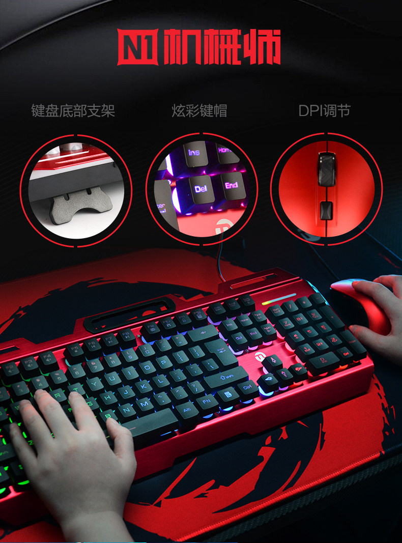 Ning, американская механика, клавиатура, мышь стандартный комплект Офисный домашний настольный компьютер ест курицу для Игры имеет Комплект манипулятора для мыши и клавиатуры с проводной подсветкой