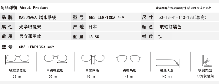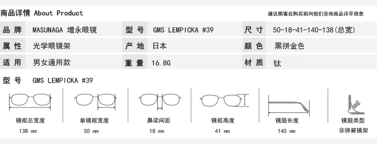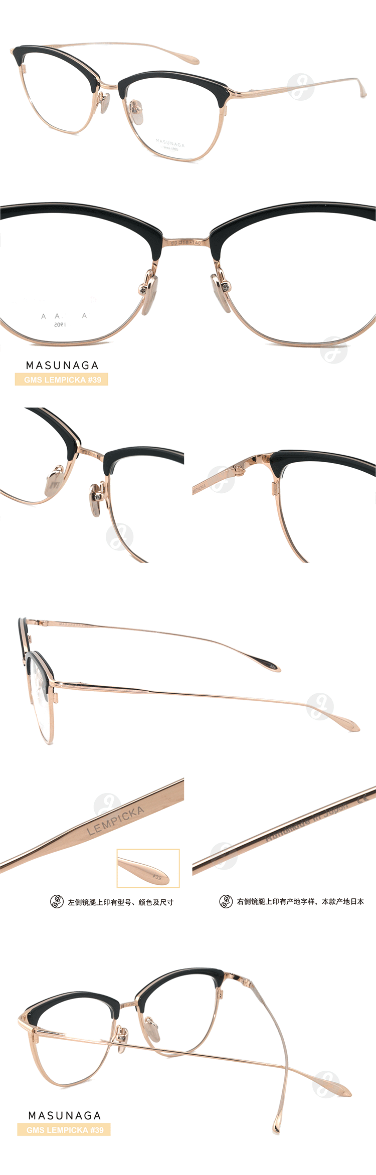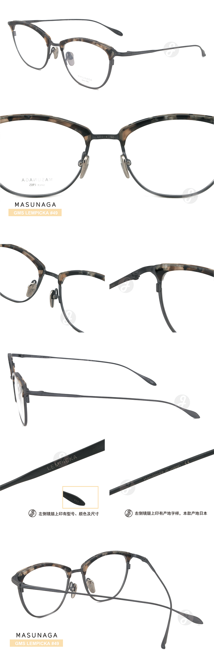 Масунага увеличивает глаз зеркало GMS LEMPICKA винтаж Оптика миопии зеркало Рамка