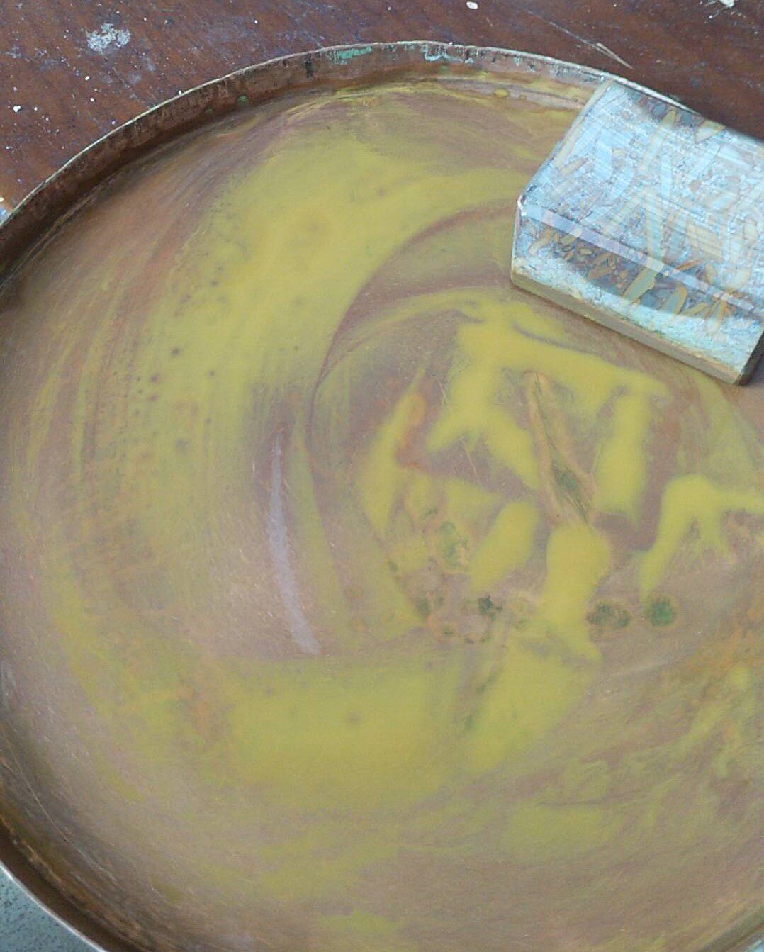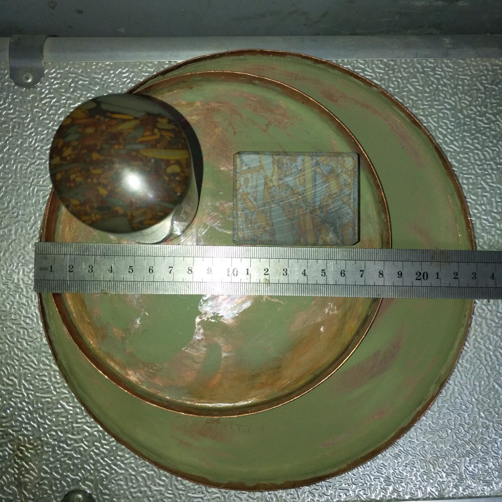 - Большая медная тарелка круглый зеленый камень