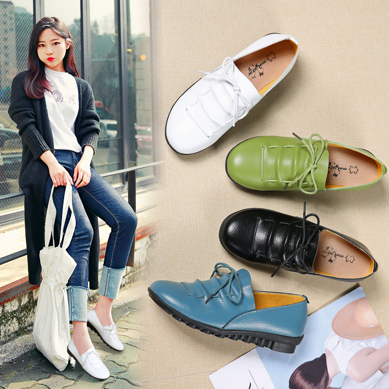 Из натуральной кожи Нога на плоской подошве Женская обувь квартира с медсестрой туфли для отдыха Ленивая беременная женщина кожаная обувь Материнская обувь для Горох обувь