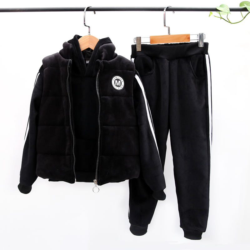 На девочку комплект 2021 новая коллекция демисезонный стиль Золотой бархат детские утепленный толстовка Зимние крупные дети замшевый два наборы