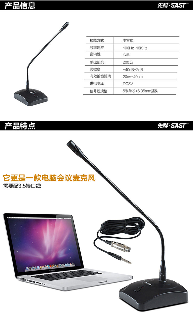 SAST / Skullo Goose Neck Микрофон конференции Desktop Ноутбук конференции Broadcasting имеет Линия микрофона