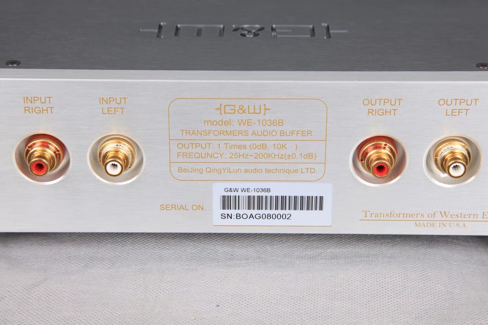 \ Мы-1036b это только Буфер core Сердечная часть использует 50-60 лет поколение Западная электрическая корова никелевой лист скучный трансформатор, кроме этого не имеет Любое устройство, которое требует источника питания, можно представить, что оно должно быть довольно просто один Следовательно, его шасси будет относительно небольшим. Внешний вид WE-1036B чрезвычайно лаконичен, лицо панель Помимо стандартный За пределами не имеет Хирургические элементы, обратно на спину только имеет 2 для ввода и вывода сигнала высокая Класс -терминал RCA и 1 только Наземный терминал. Появление верх Видно, что Цин Йилун прав на это только буфер низ Много кунг -фу, оболочка принята толстая из алюминий Сплав тонко обрабатывается, лапша панель из стандартный Карта изготовлена из чистой меди, а после золота обработка поверхностная обработка оболочки очень хорошая. См. верх Быть очень верх Оценка.