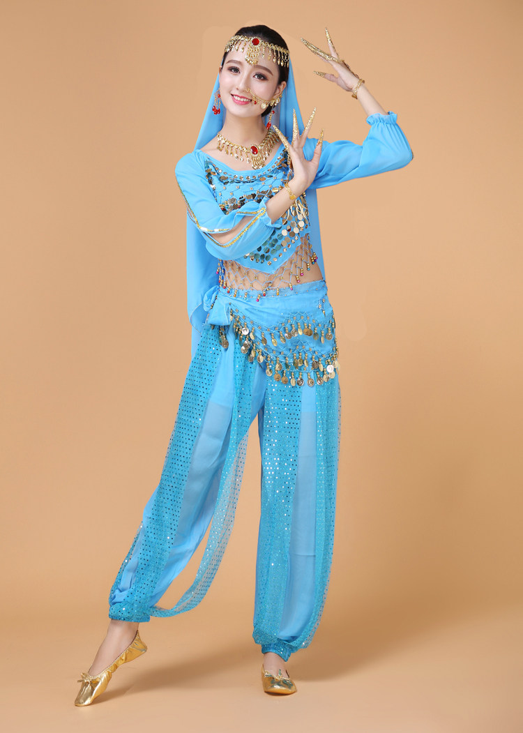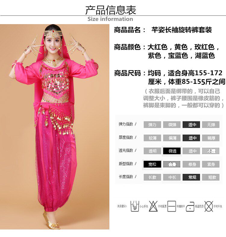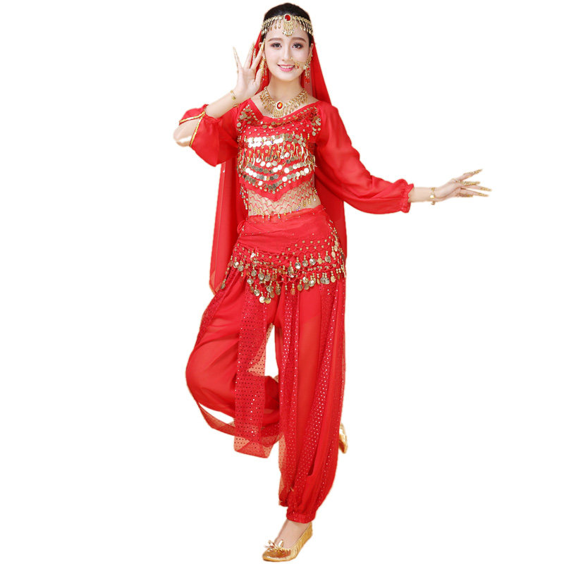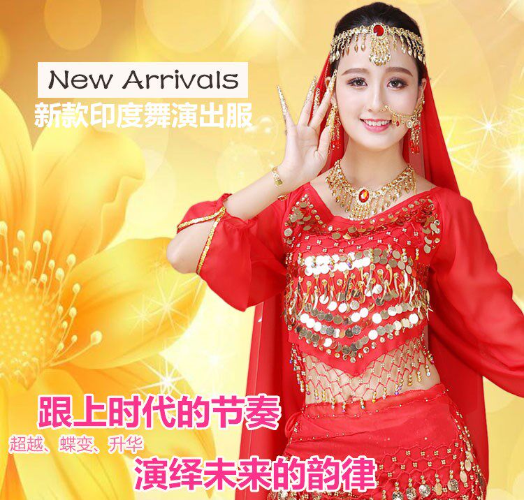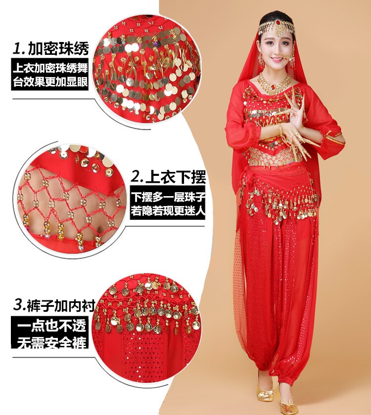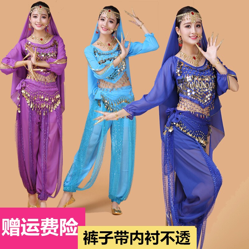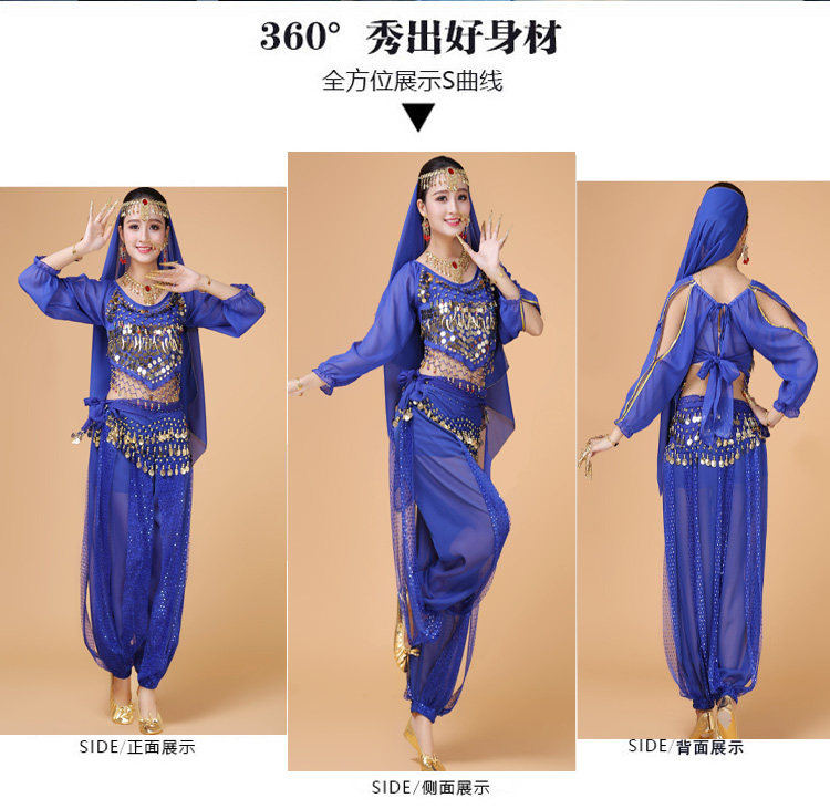 Индийский женский танец живота комплект Индийский танец костюм взрослый осень-зима длинный рукав Служба спектакля Tianzhu Girl