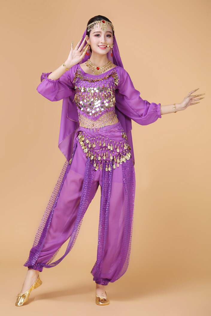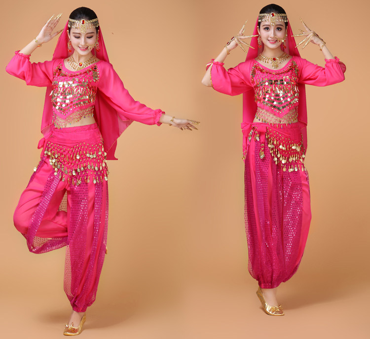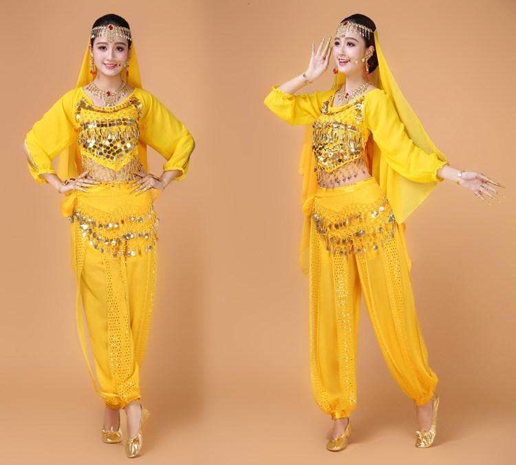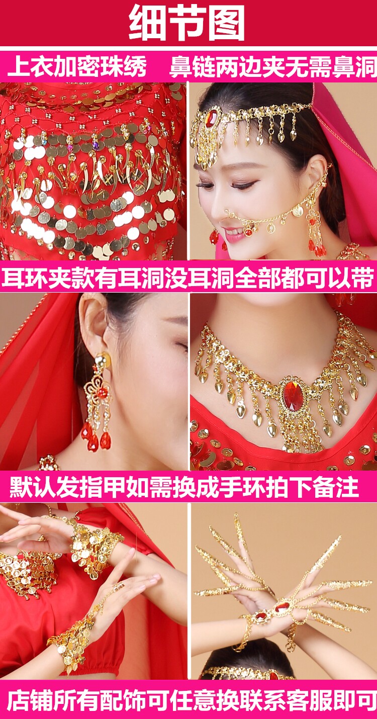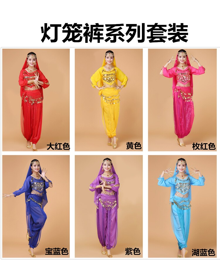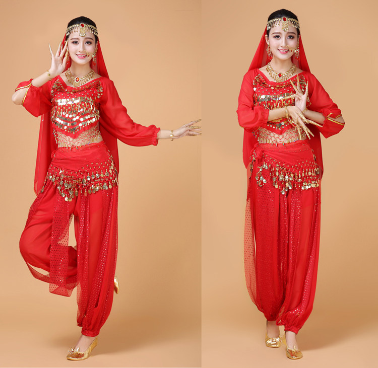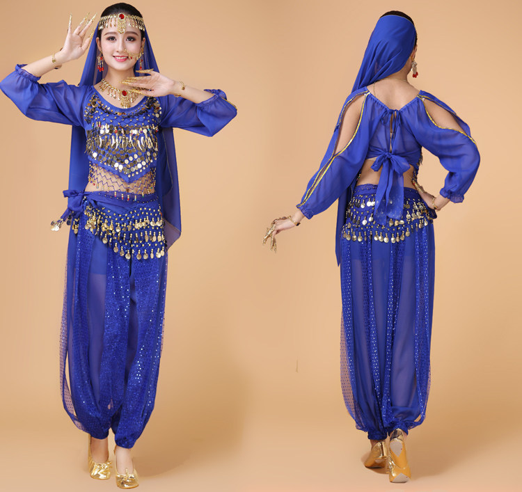 Индийский женский танец живота комплект Индийский танец костюм взрослый осень-зима длинный рукав Служба спектакля Tianzhu Girl