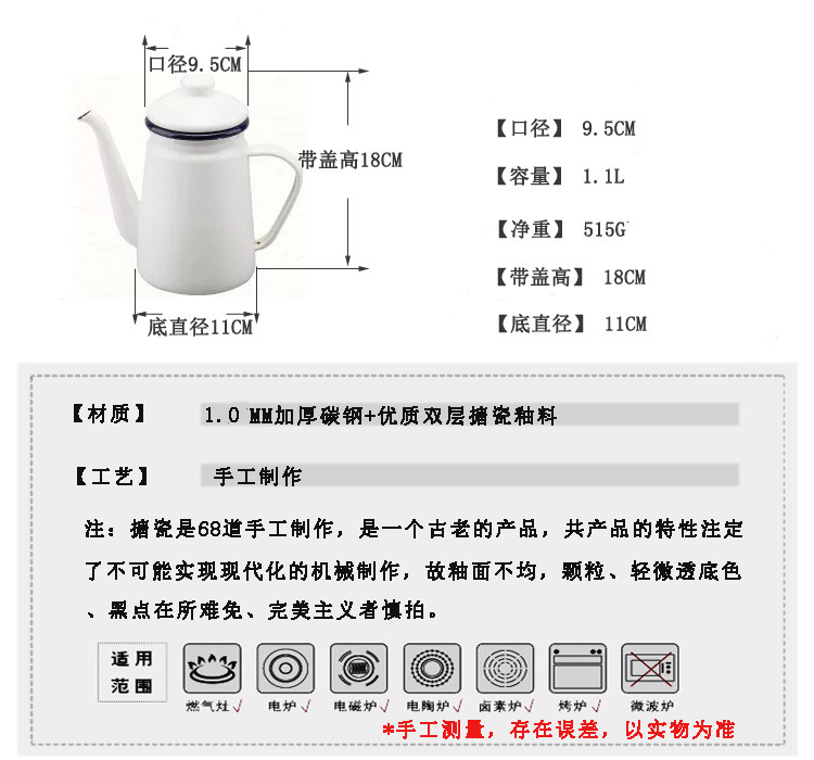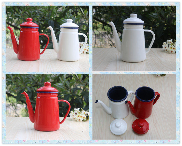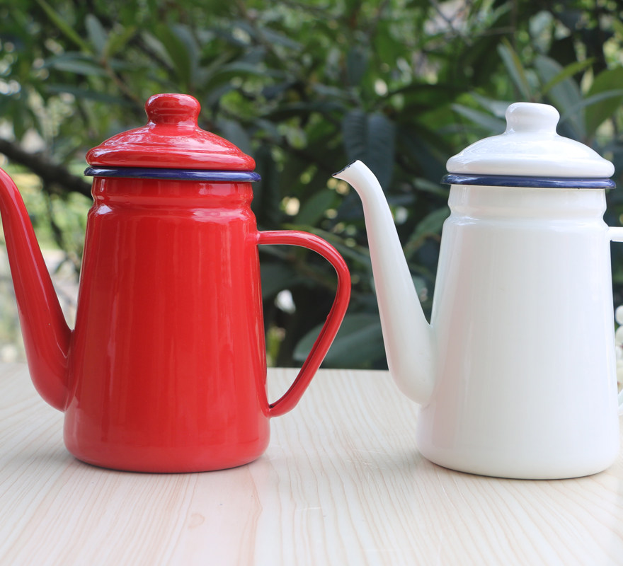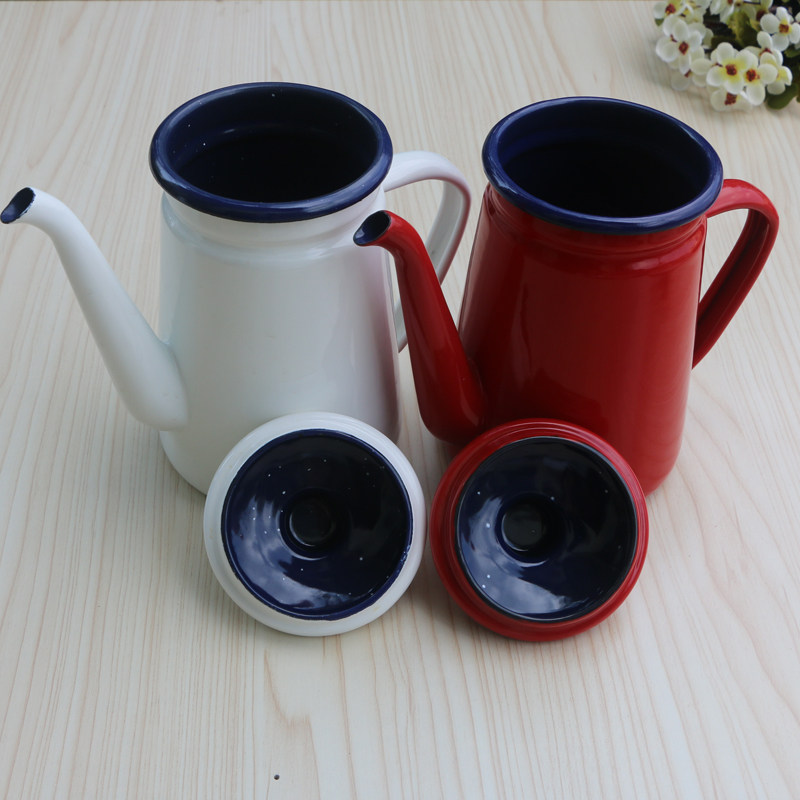 Утепленный Эмалевая рукавая кастрюль -ручная рука с тонкой рот чайник нефтяной горшок чайник газовой печь Universal