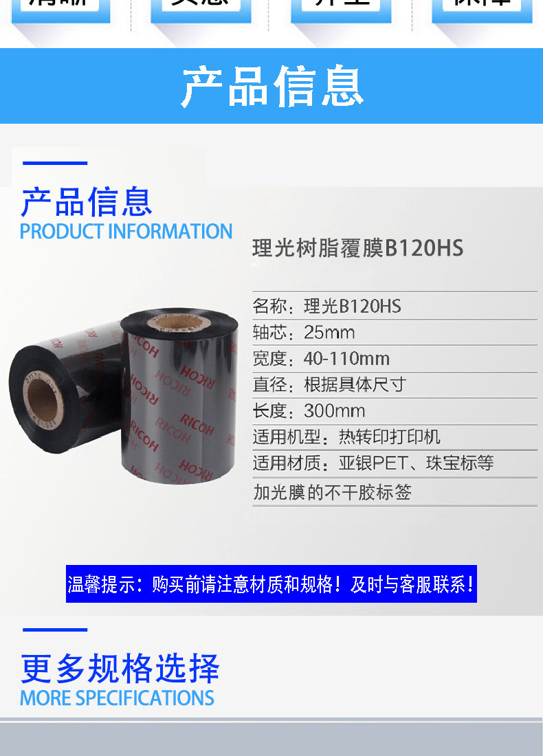 理 光 Ricoh B120HS 300 метров полностью Смола углеродная лента полосатый Кодовые чернила с устойчивой к царапинам ленты печать пленки Pet 110 мм * 300 м 50 60 70 80 90 100