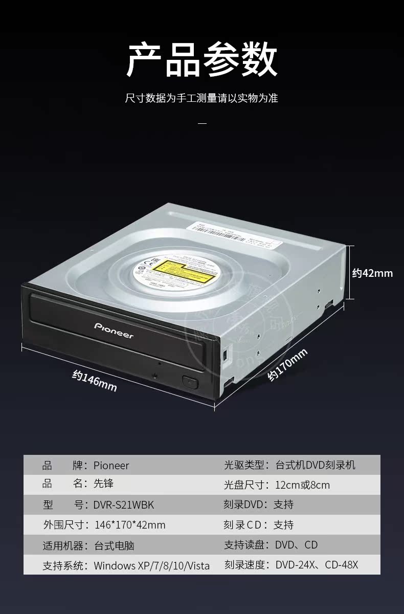 Pioneer / Pioneer S21WBK 24 Speed Sata интерфейс SATA внутренний DVD Burner Desktop черный