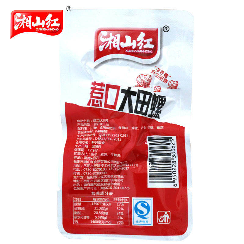 Фирменное блюдо провинции Хунань Сяншань красный Мясо улитки тиан острое мясо винт острый снек 15г * 20 пакет Острое мясо улитки из морепродуктов