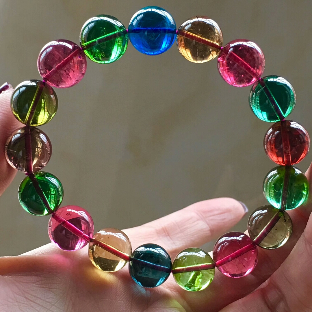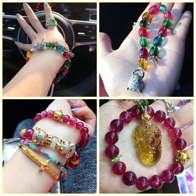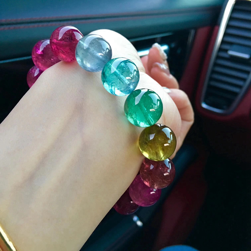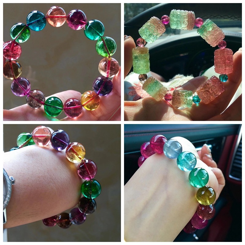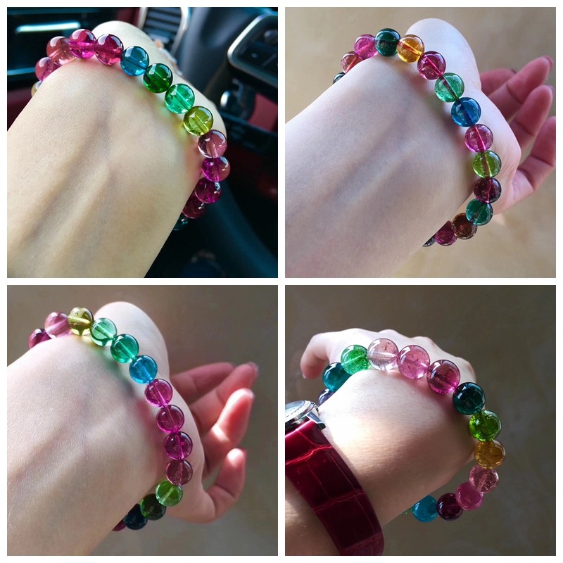 Все естественно оригинал Турмалин браслет конфеты цвет Радужный турмалин браслет один Круг Бразилия Арбуз Мульти-Круг Рука Три Круги