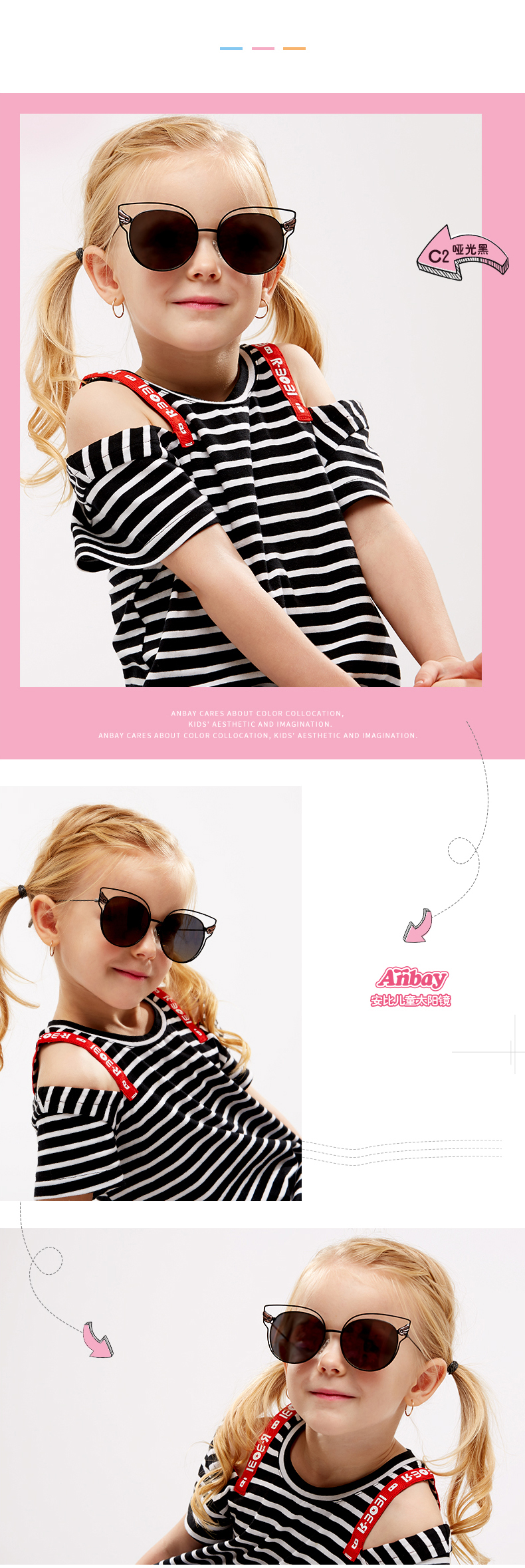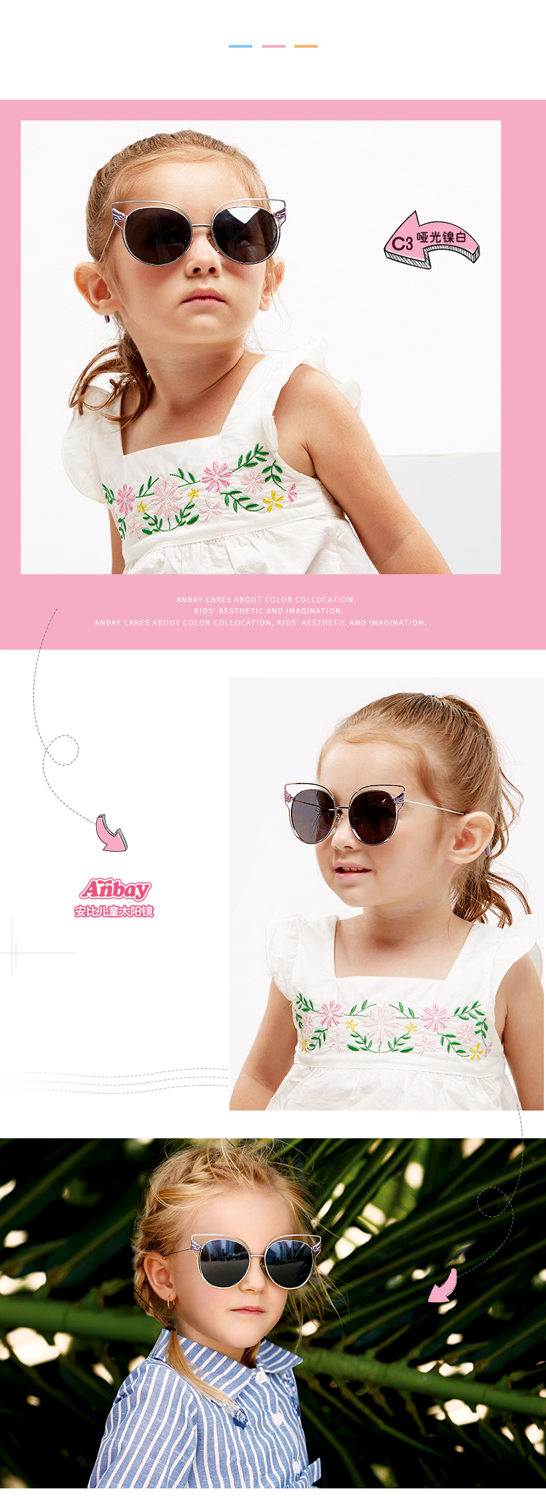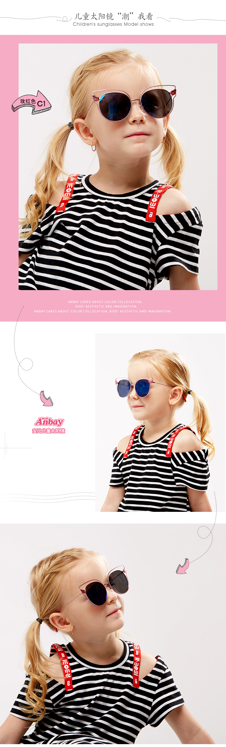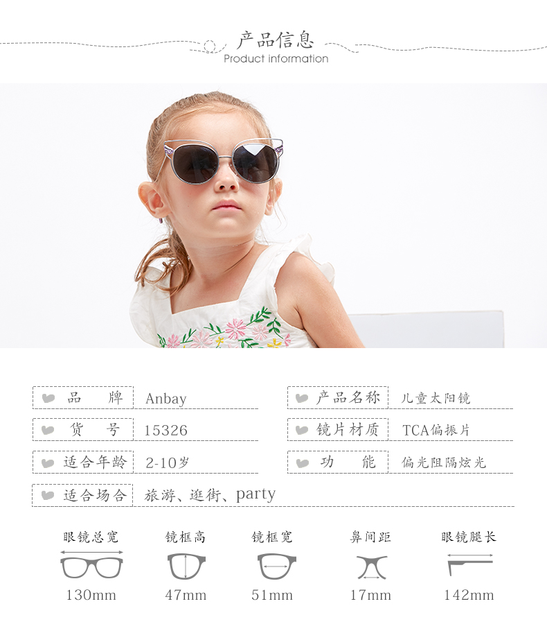 Anbay Anbay детские Солнечный глаз зеркало Поляризованный на девочку УФ-УФ-Глаз зеркало детские чернила зеркало Пляжное солнце зеркало