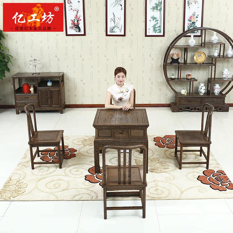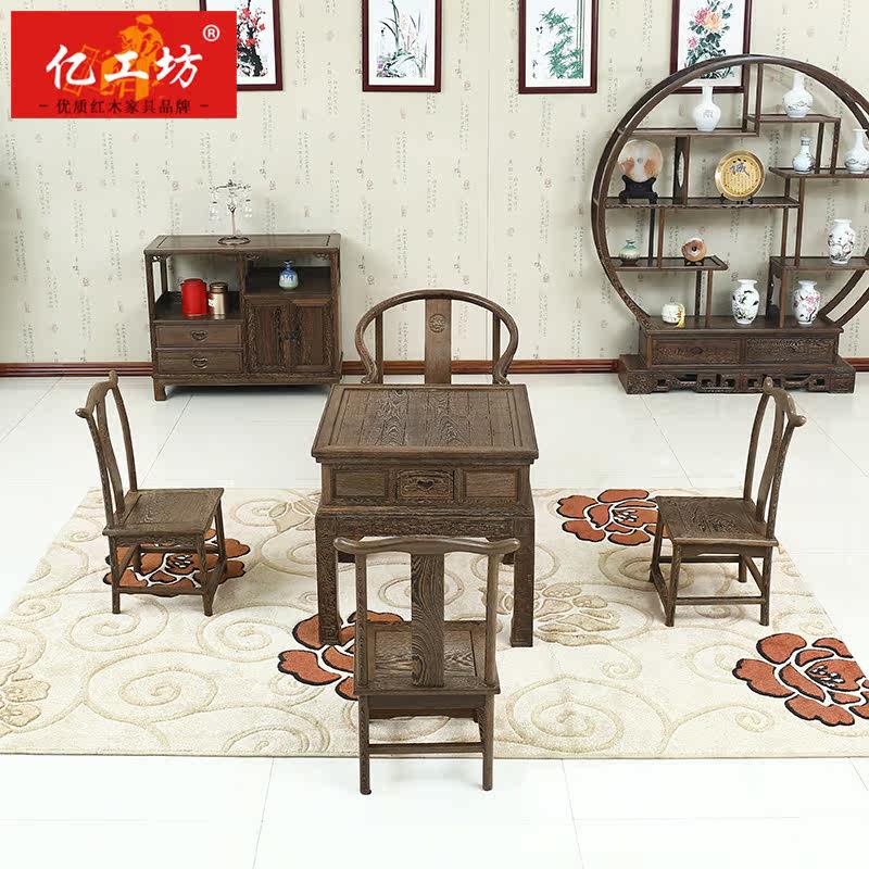 Сочетание стула для чая для чая копия Древний шахматный столик куриный крыло деревянный чайный стол для отдыха Таблица красный Деревянная мебель