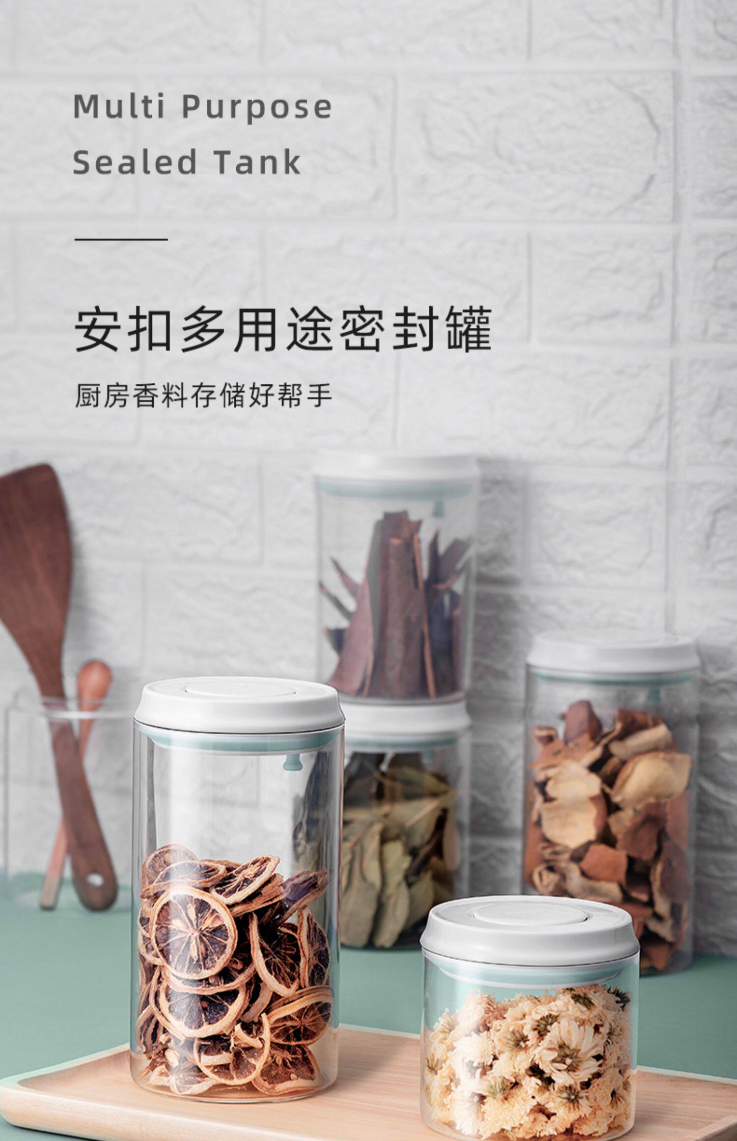Установить с застежкой нажимать с застежкой Кухонная специя для хранения резервуаров сушеные фруктовые стекла уплотнительная коробка канула белый Продовольственный бак для хранения сахара