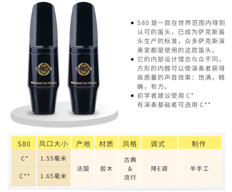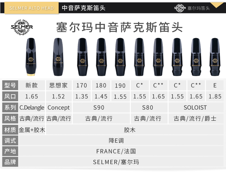 Французский Selmer Selma Satriven Saxi Head Concept Concept Thrething Soloist S80 S90