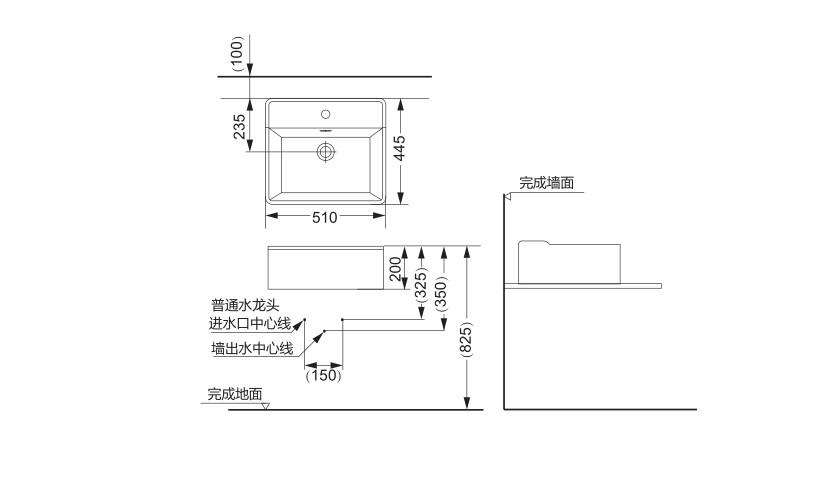 - Три отверстия без Смеситель и низ воды