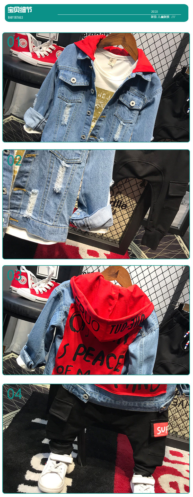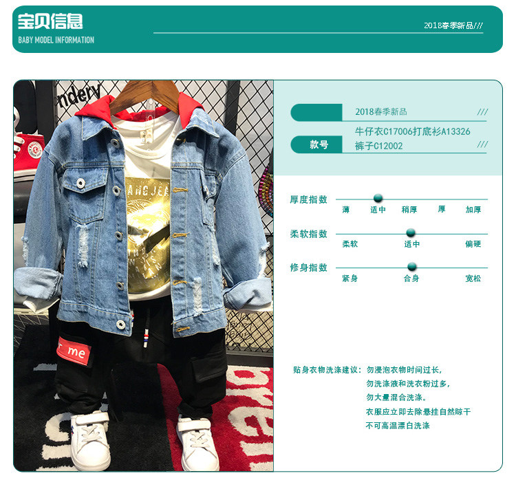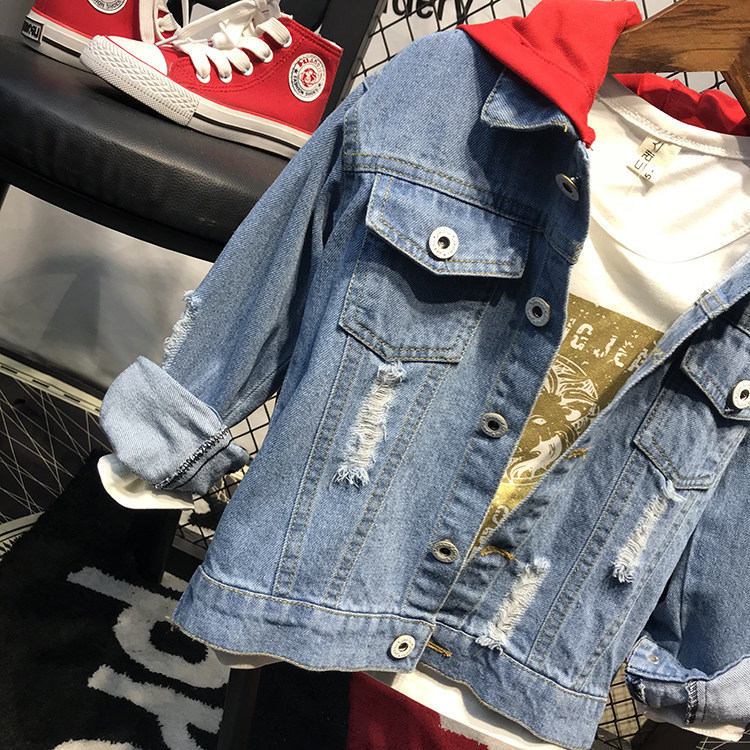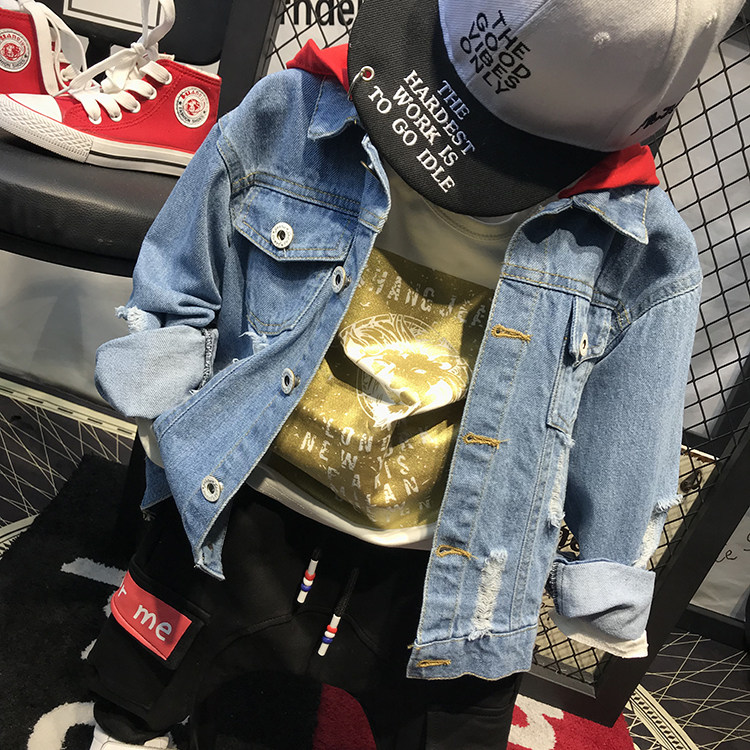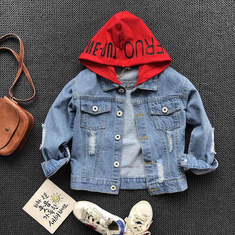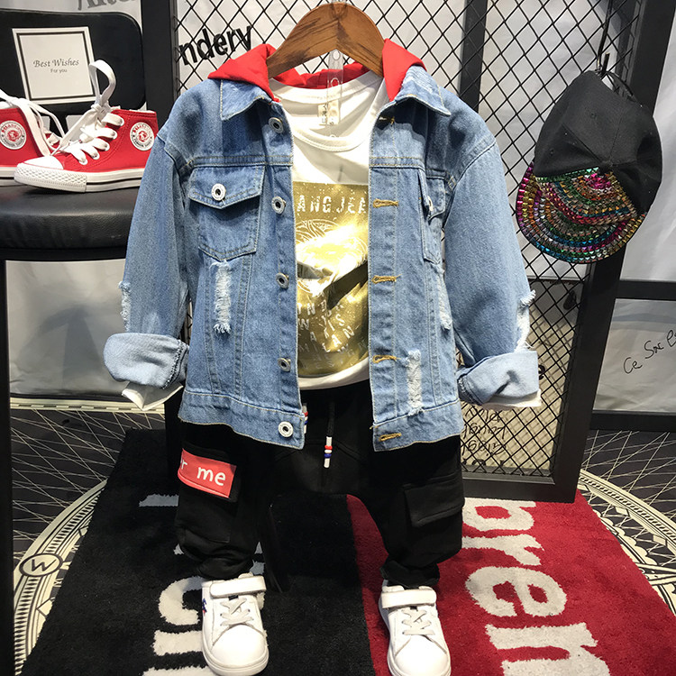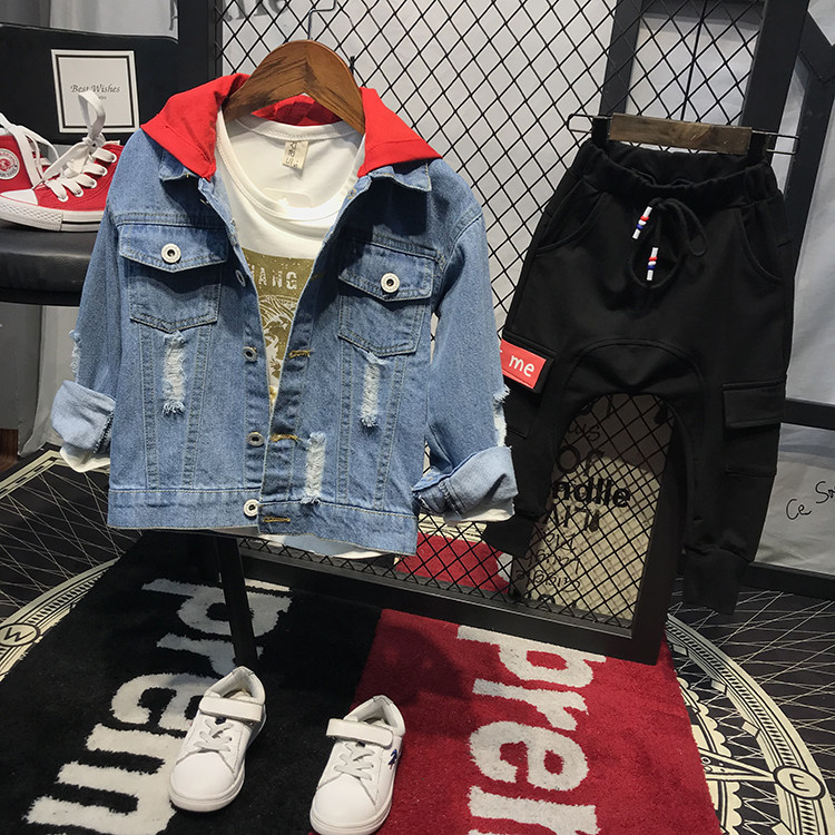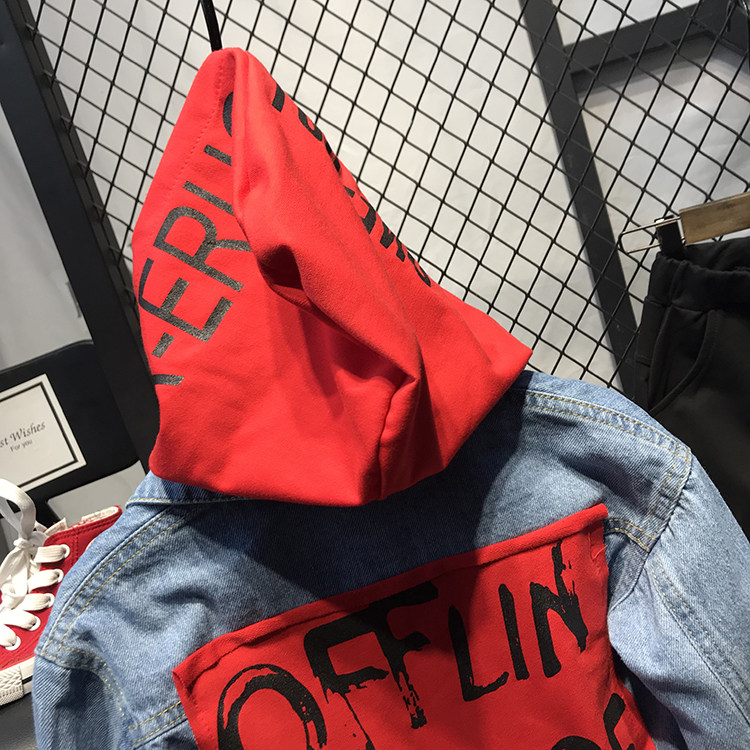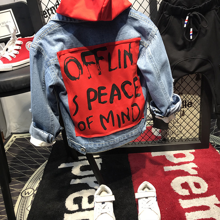 Мужской детские демисезонный Пакет куртка на мальчика джинсовый куртка корейская версия Прилив с капюшоном джинсовый Сопоставление матов для отдыха Штаны