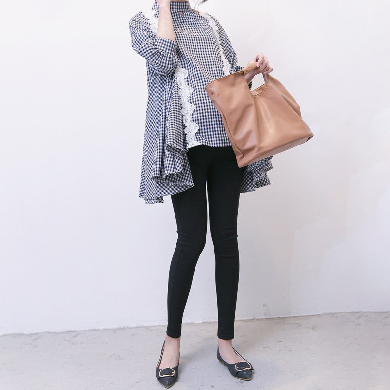Платье беременной женщины демисезонный клетчатый сорочка Юбка свободно Средний рукав кружева Шище Беременные Женщины Юбка Мать Весна верх Куртка