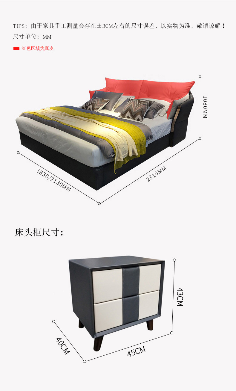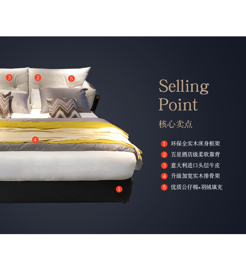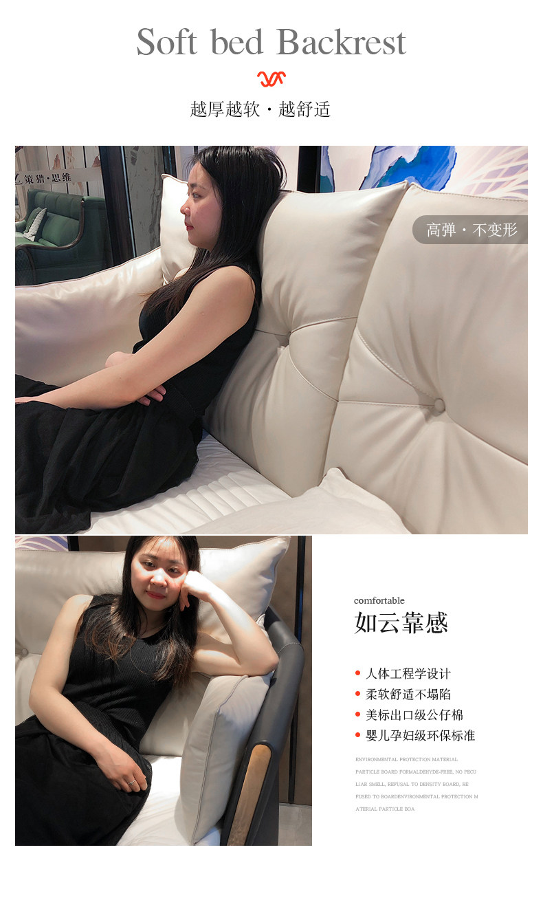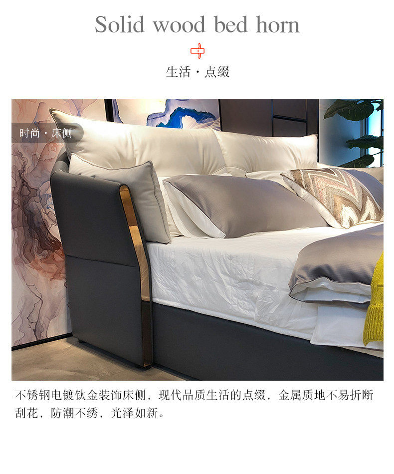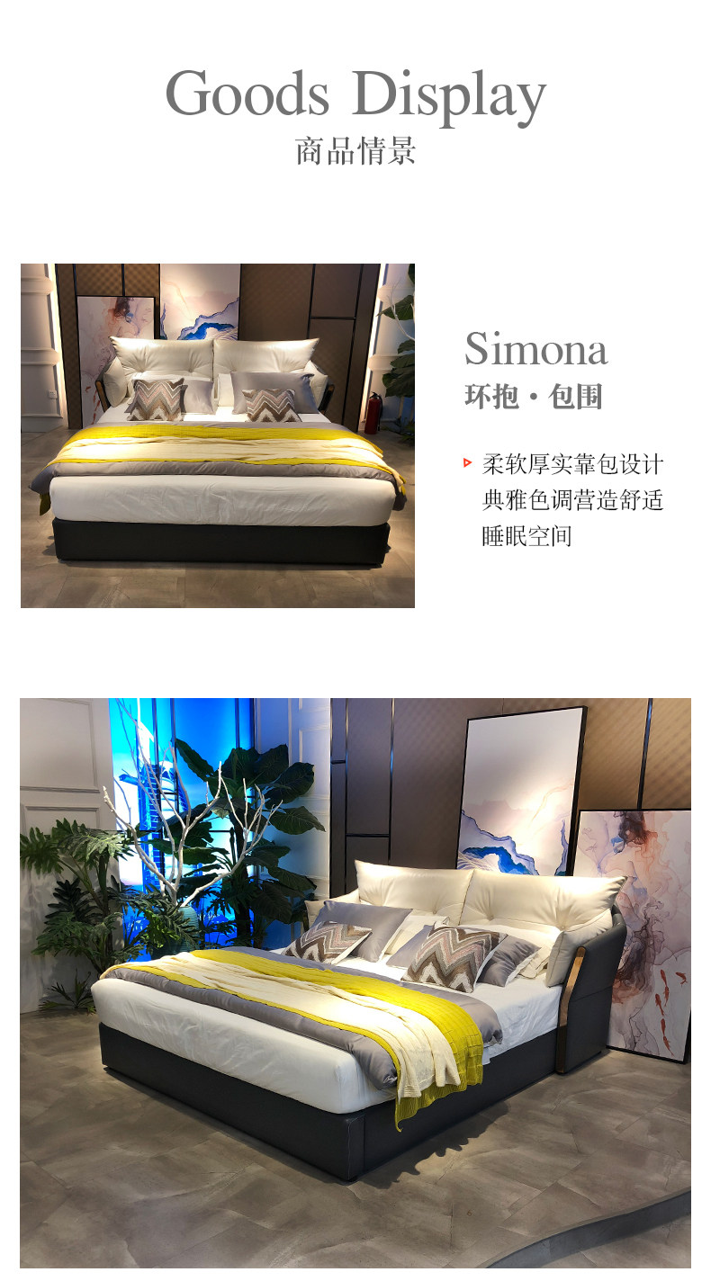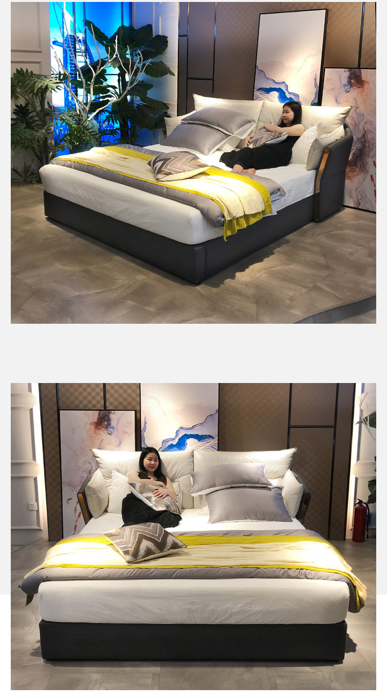 Кожаная кровать из натуральной кожи Легкая кровать роскошная двуспальная кровать простота поколение 1,8 метра атмосферной сети красный Xi mengsi главная спальня с большой кровать