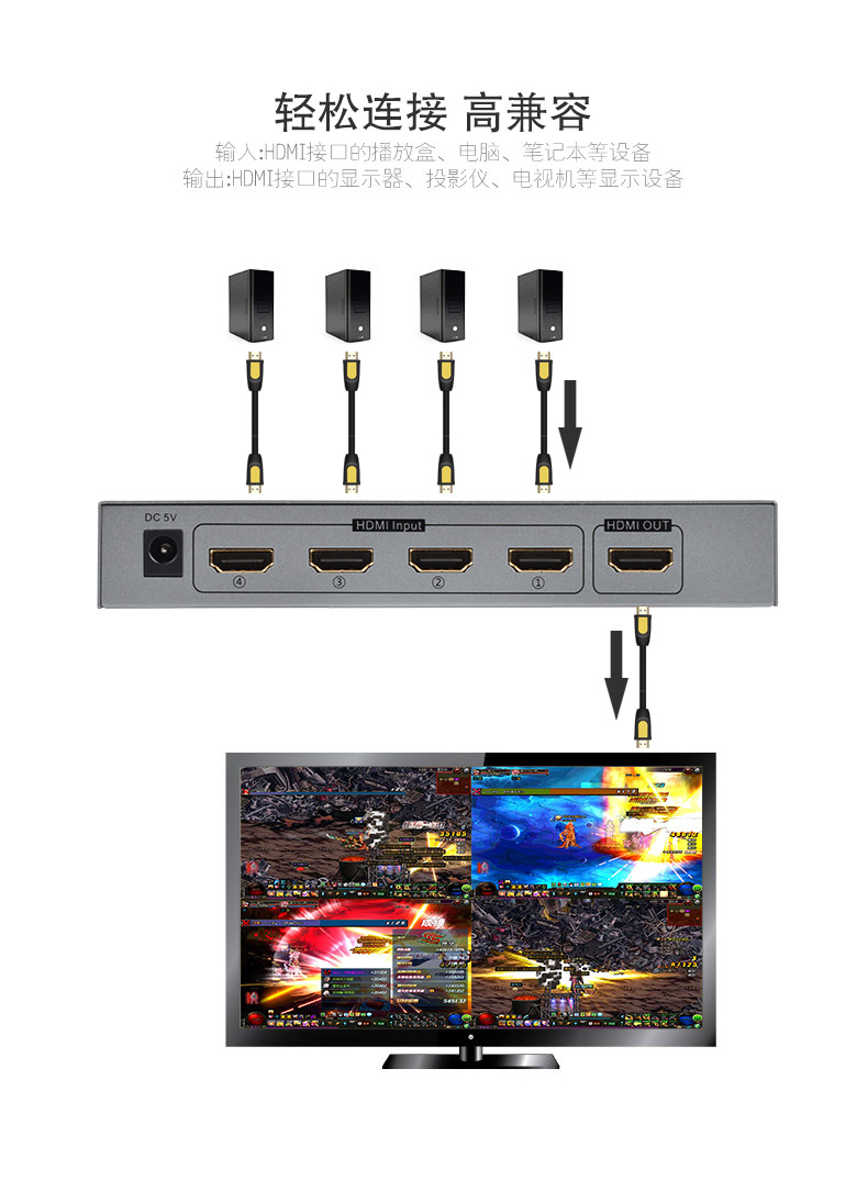 Fengjie 4 фотосъемка HDMI частота Переключите четыре в разветвительную игру движущегося кирпича