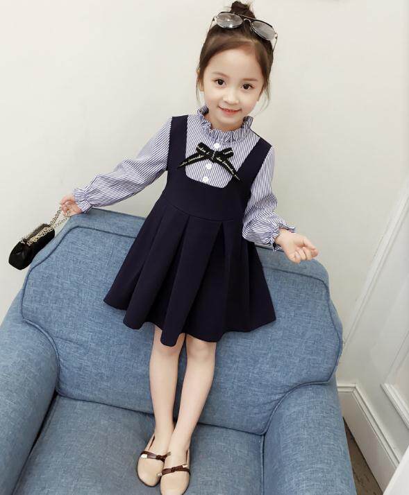 2022 демисезонный новая коллекция на девочку длинный рукав Платья девушки в детях сшить маленький ясный новый Два куска для маленькой принцессы юбка
