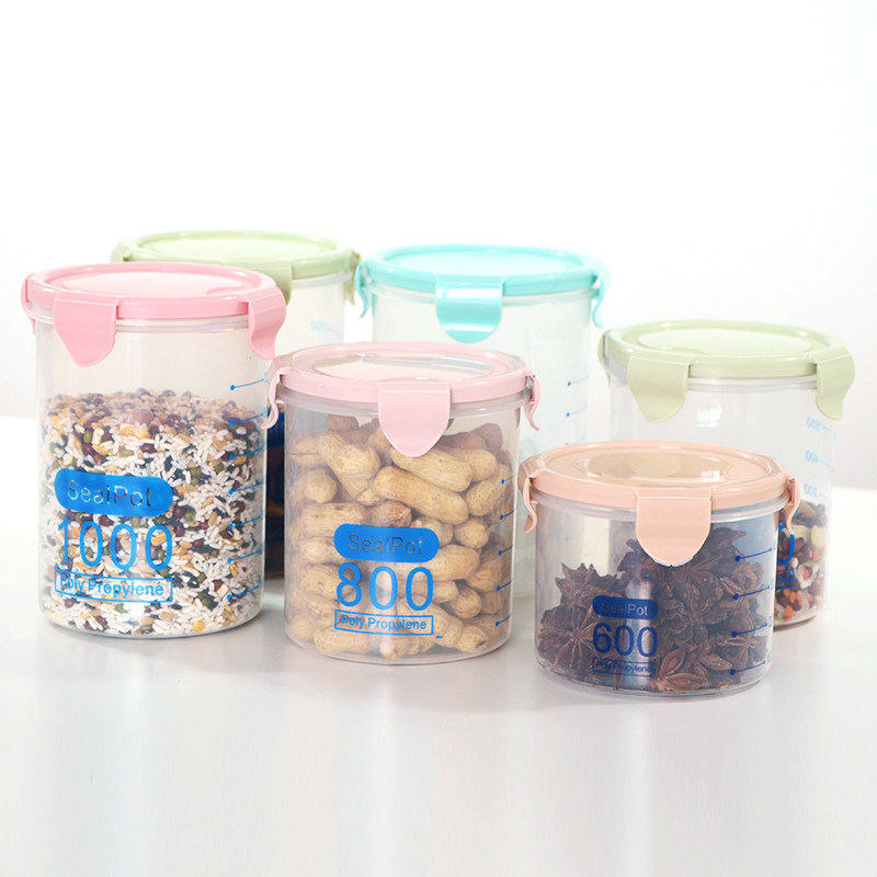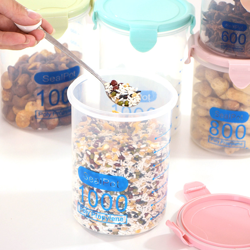 Прозрачные пластиковые герметичные банки Главная Молоко Порошок горшок Пищевые банки Кухонные зерна Смешанные пищевые полосатый органайзер