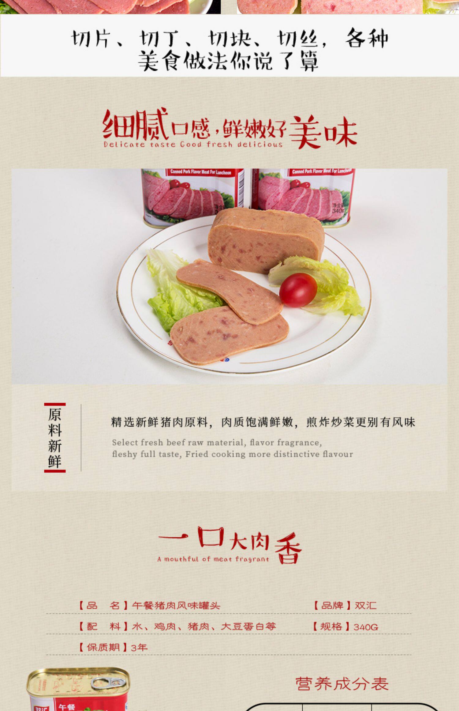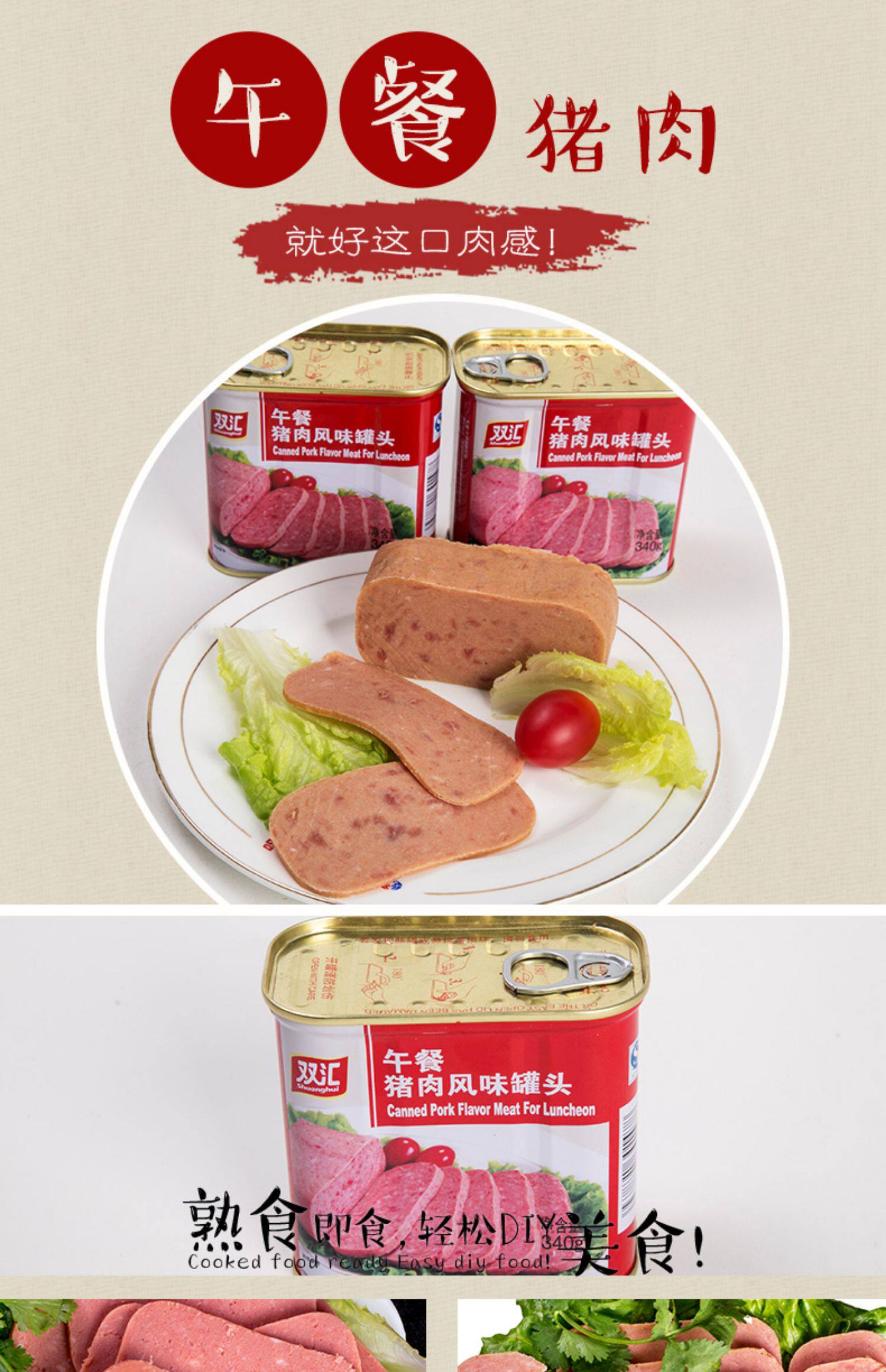 Shuanghui обед свиные ароматы банки 340 г 火 锅 理 理 即 食 火 火 火 面 面 面 面