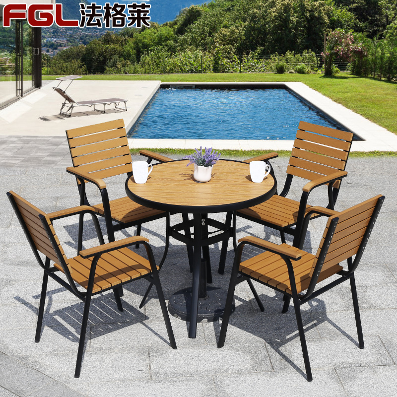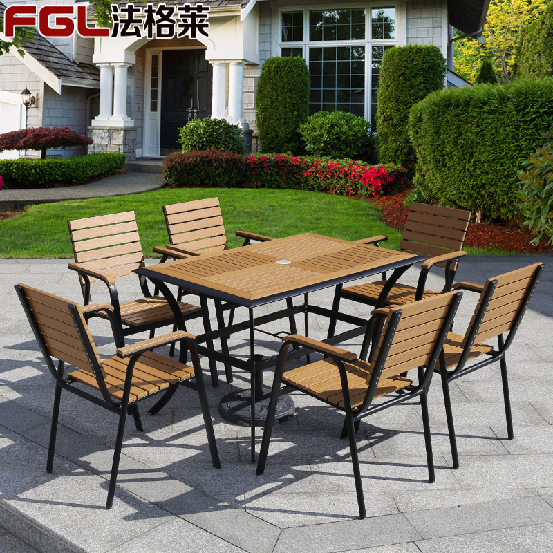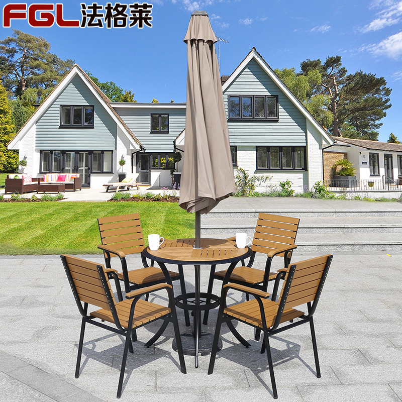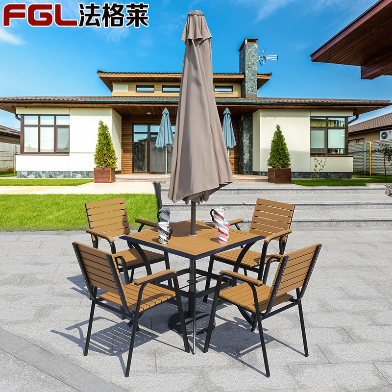 Открытый стол и стул Обеденный стол и стул во дворе комбинация открытый открытый балкон для отдыха Пластиковый деревянный стол и стул в кафе, стол и стул с зонтиком