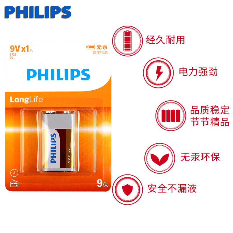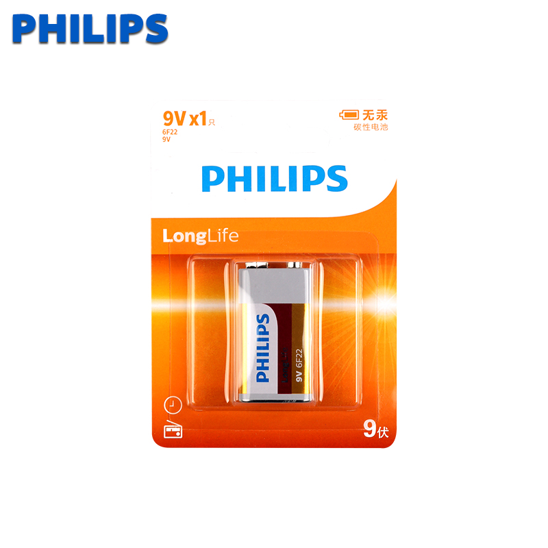 Philips Battery 9-вольт Углеродная батарея 1 Капсула 9 В Микрофон Мультиметр Детектор Детектор дыма Квадратный аккумулятор