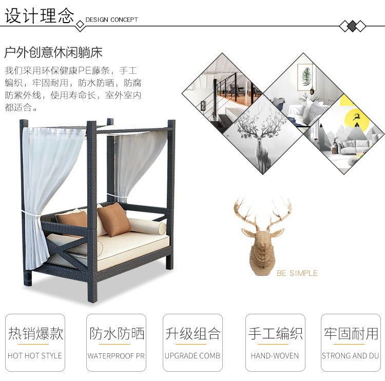 Открытый виноградный диван для кровати садовый сад сад балкон пляж кровать вилла курорт лежащий ротанг стул диван-кровать