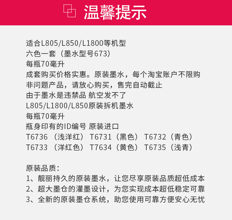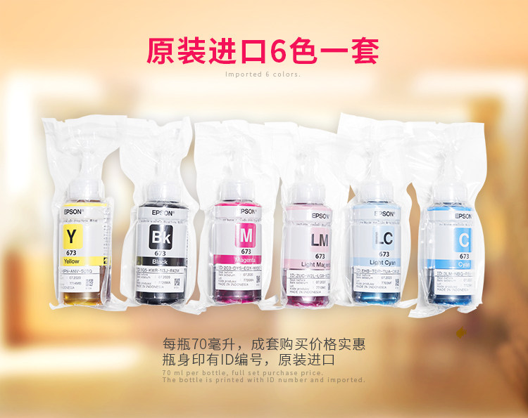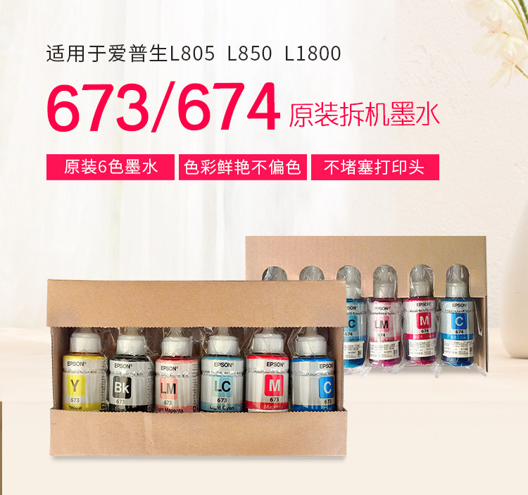 Epson T673T674. в оригинальной упаковке Разберите шесть 6-цветных чернил подходит для принтера L800L805L850L1800