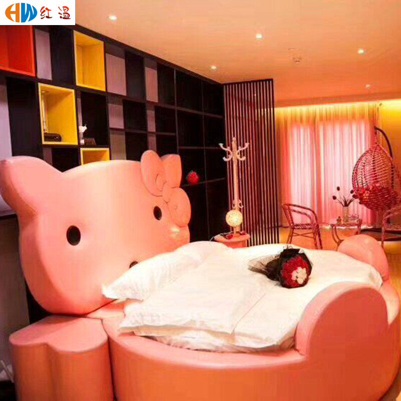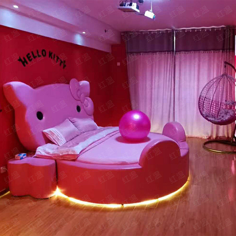 Кровать Мебель для кроватей Круглый Водный инструмент Свет Роскошный бутик-отель для влюбленной пары После темы электрической кровати поколение Двуспальная главная спальня