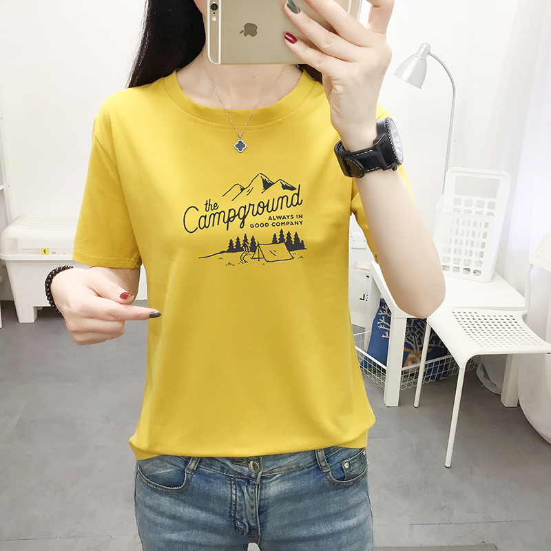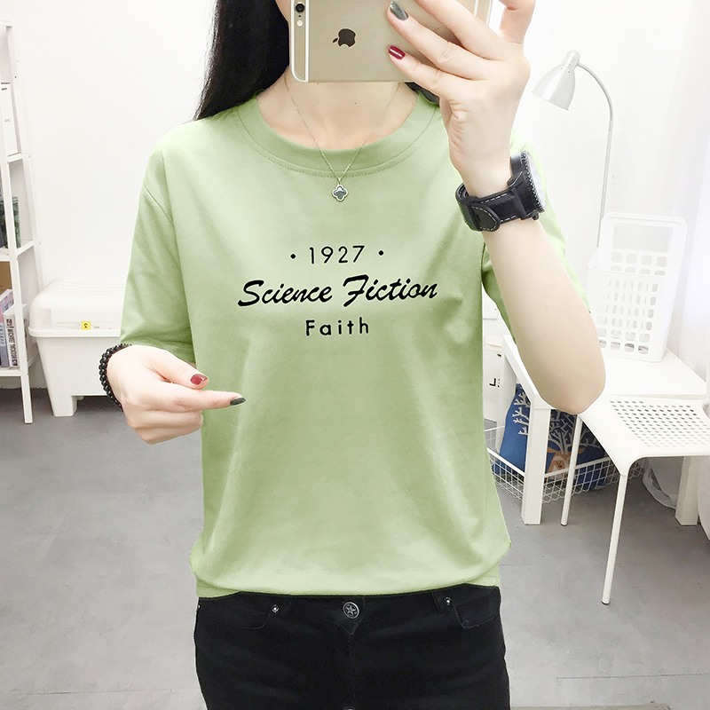 Короткий рукав ЖЕНЩИНА 2022. новая коллекция Летняя футболка студентами свободно корейская версия Ins tide. слово Мать сто хан веерский рукав верх одежда