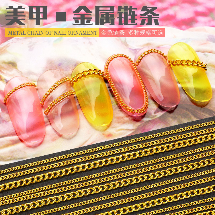 Орнамент для ногтей золотой цепь полосатый металлический цепь полосатый Грубая цепь полосатый Золотая цепочка полосатый Пограничный сплав, оформление DIY DIY