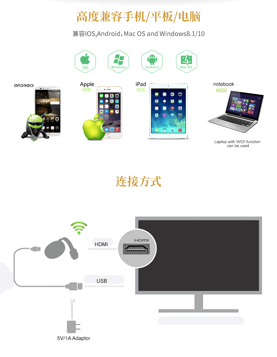 WiFi без Линия с тем же экраном HDMI высокая Очистить AirPlay android IPAD Мобильный Телефон TV Отправляющий кабель 5G