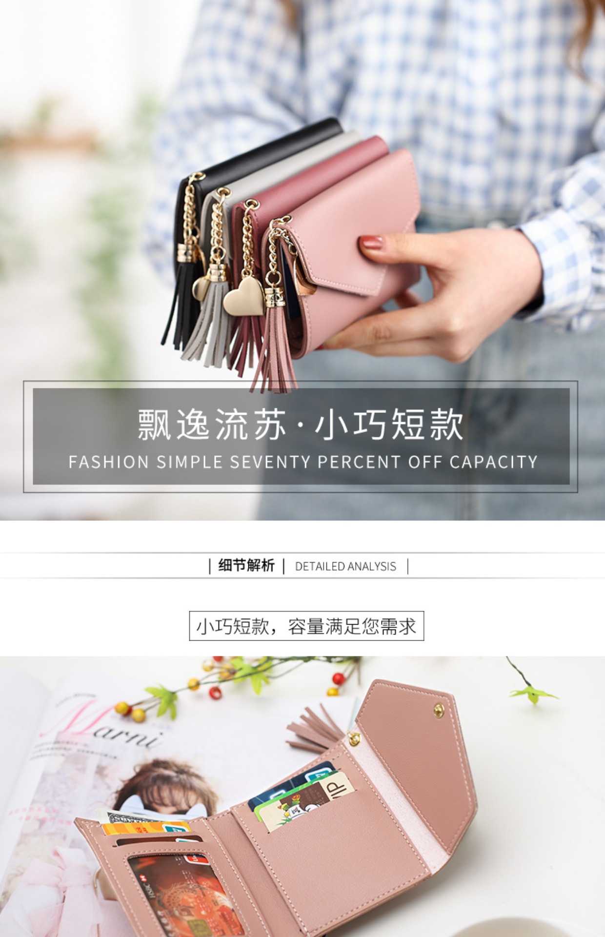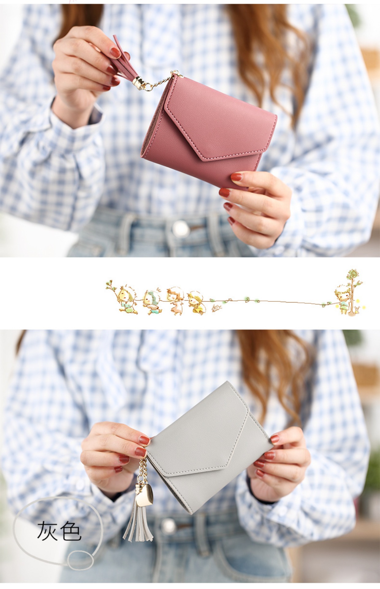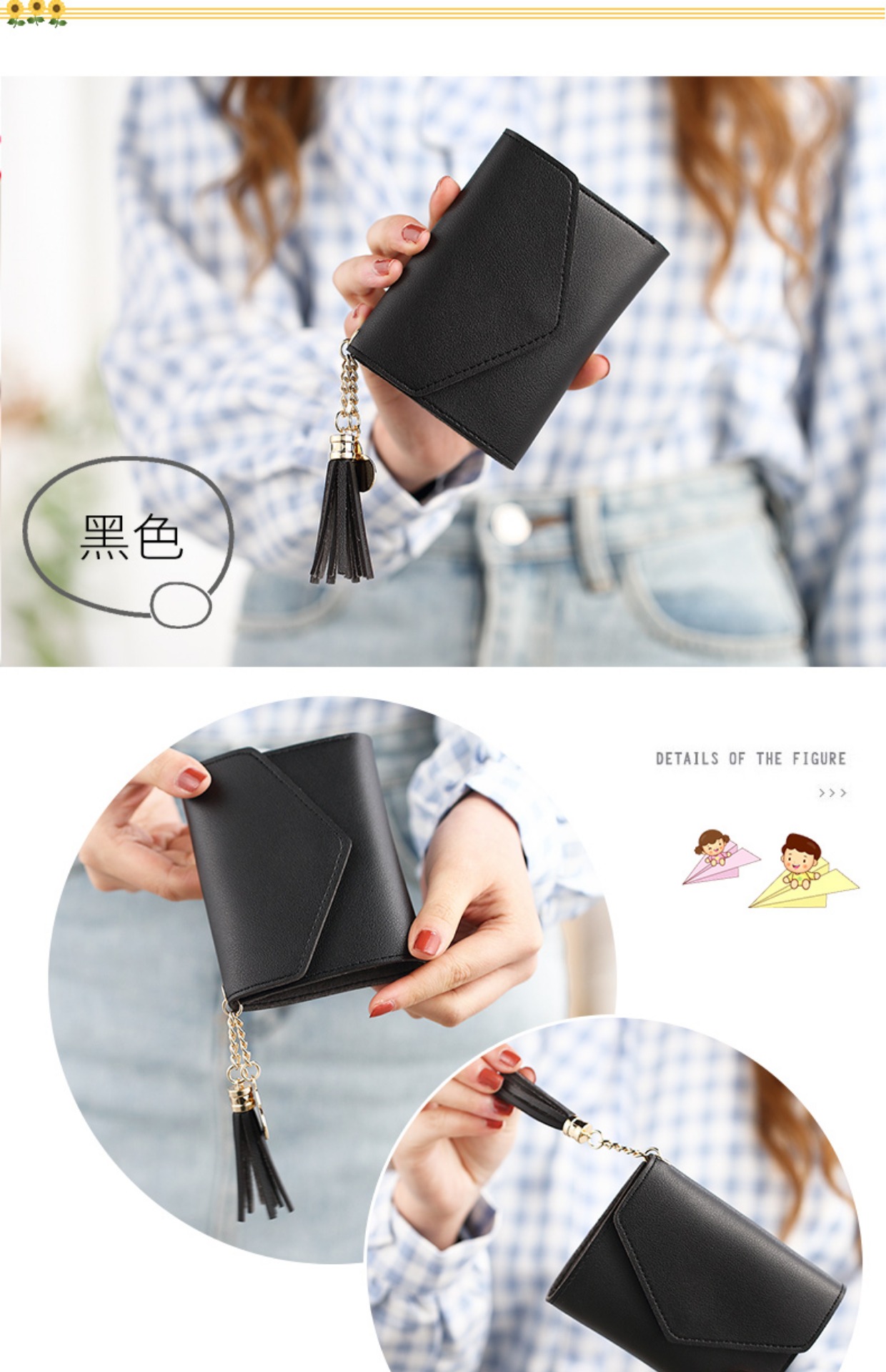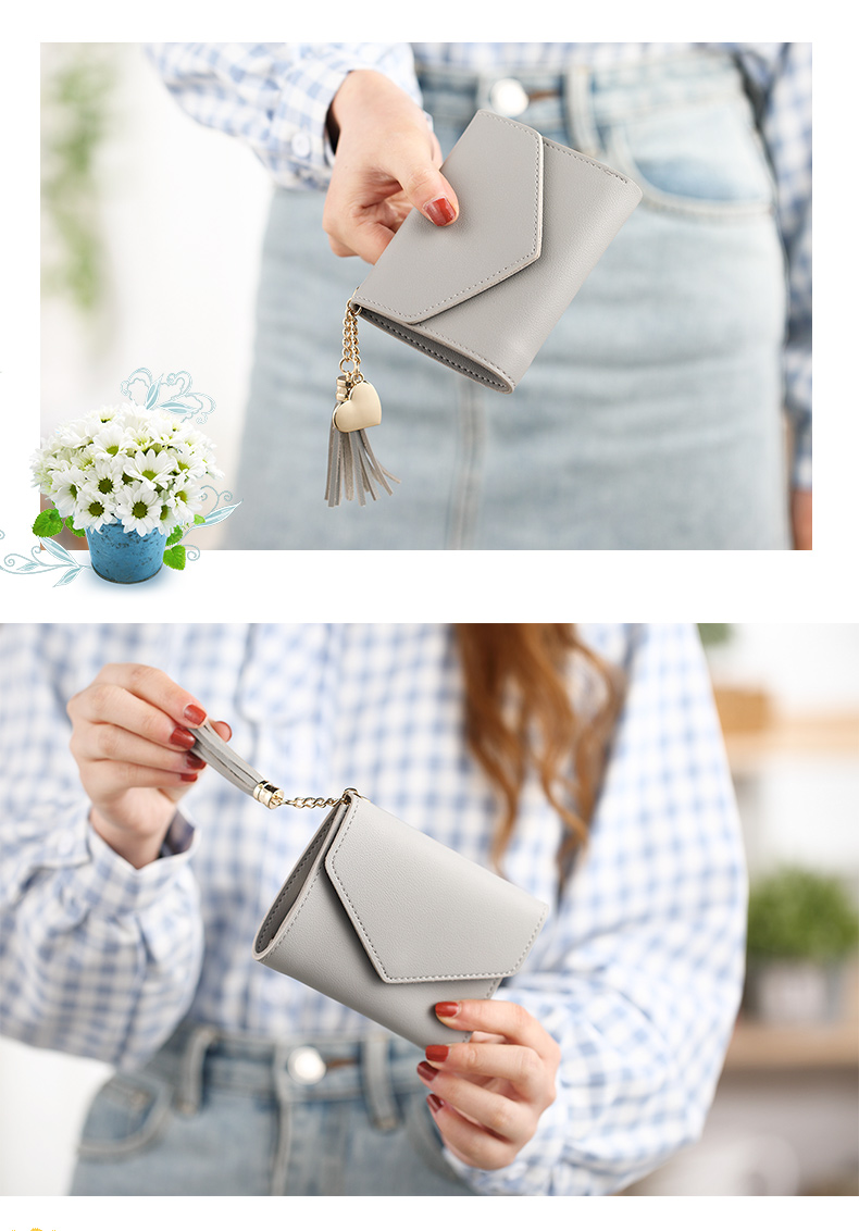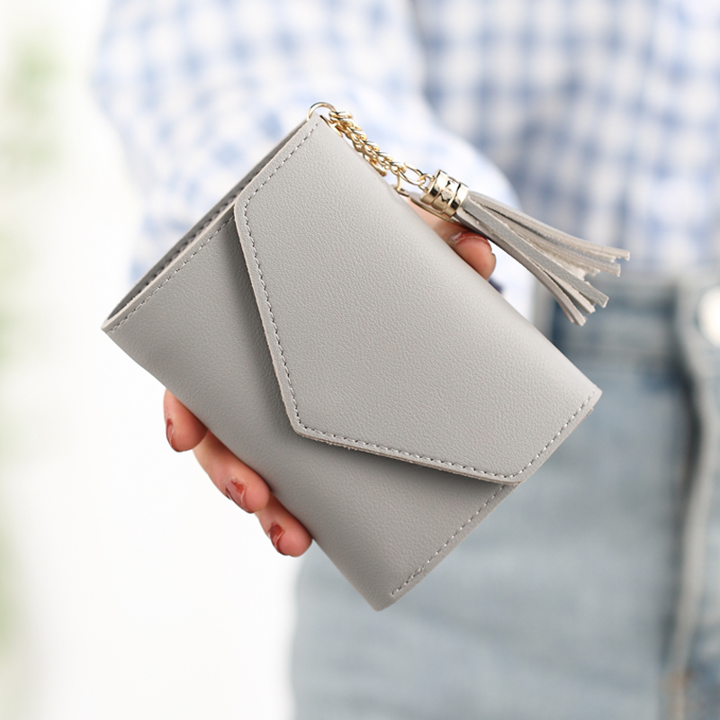 Деньги пакет женский короткий 2018 новая коллекция ученик корейская версия милый с бахромой Подвесной мини со складыванием Тонкий стиль Студент маленький кошелек