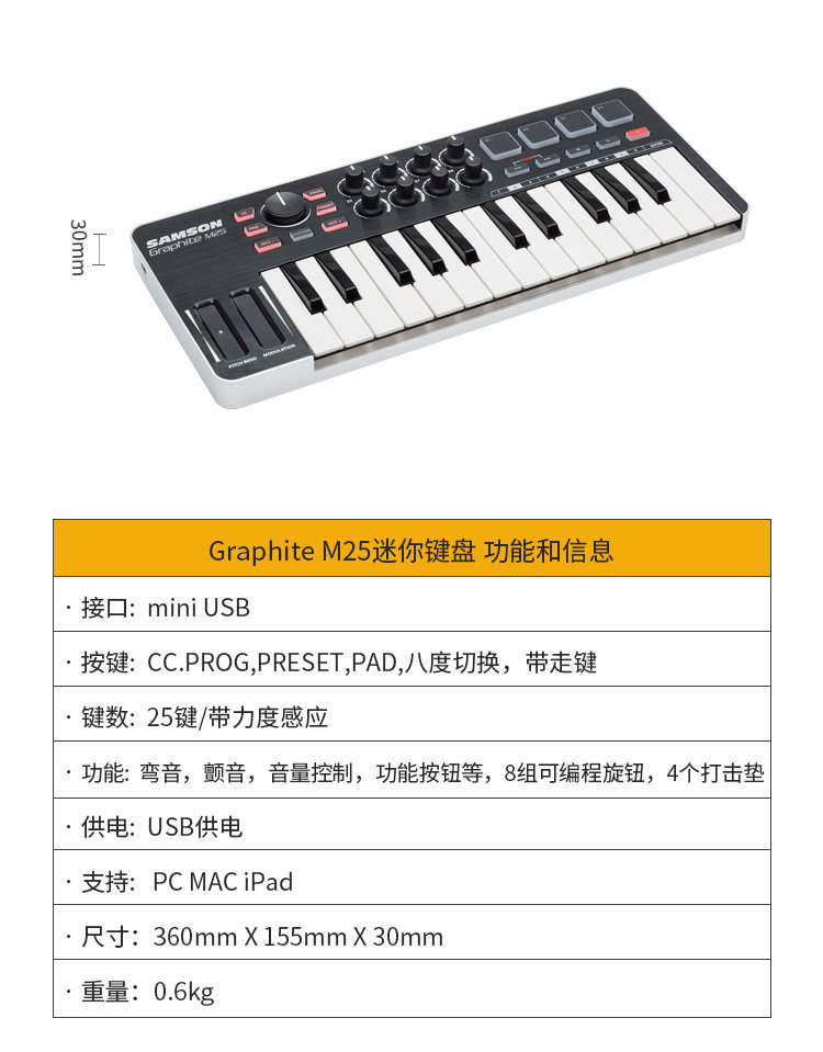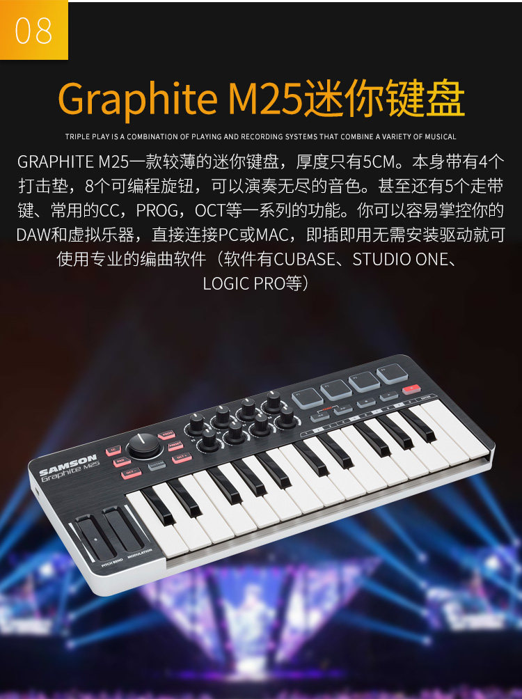 Samson Graphite 49 M25 Music Composition Professional Archives Midi Keyboard Strike Controller Controller