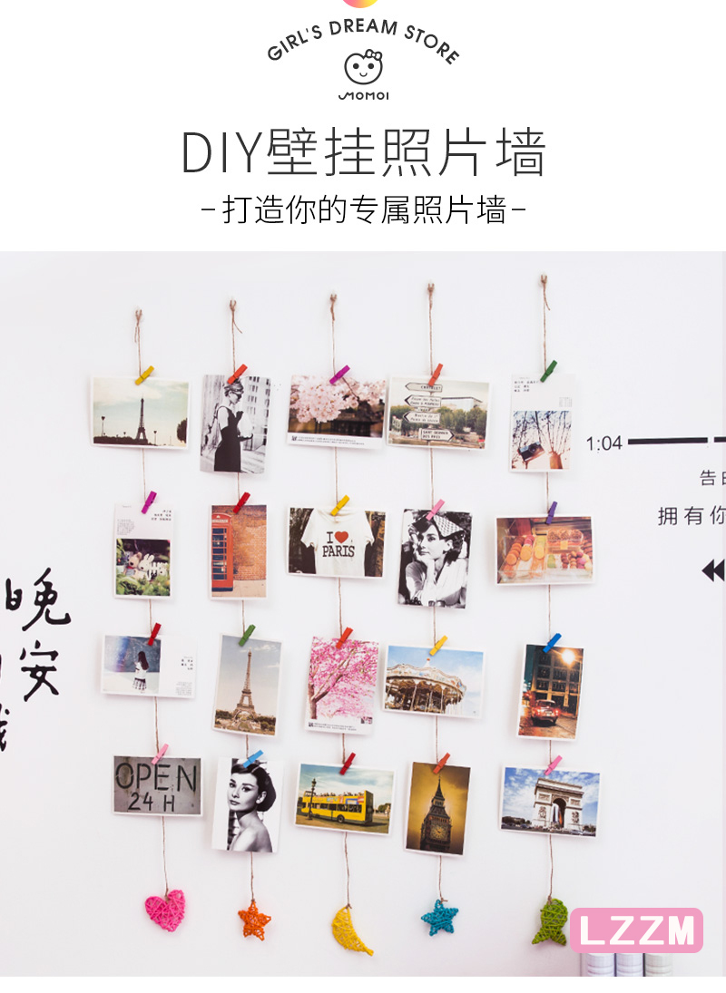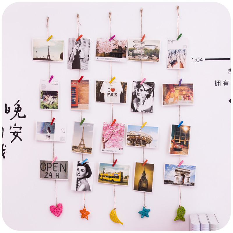 Подвеска фото стены открытки конопли веревочный клип DIY литературный винтаж Creative Ornament Cafe Сообщение Стена