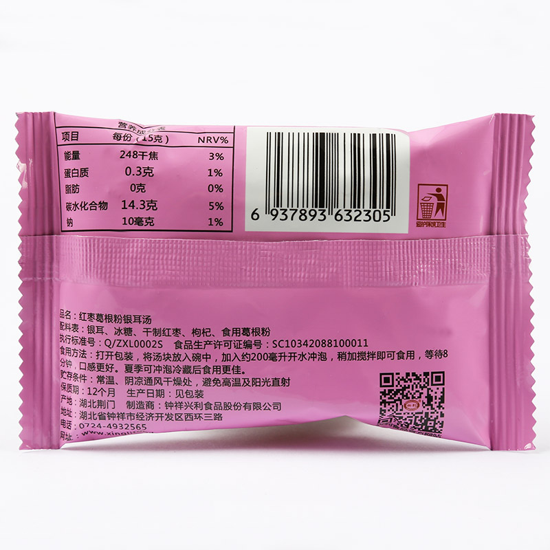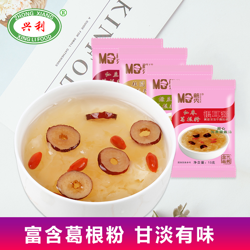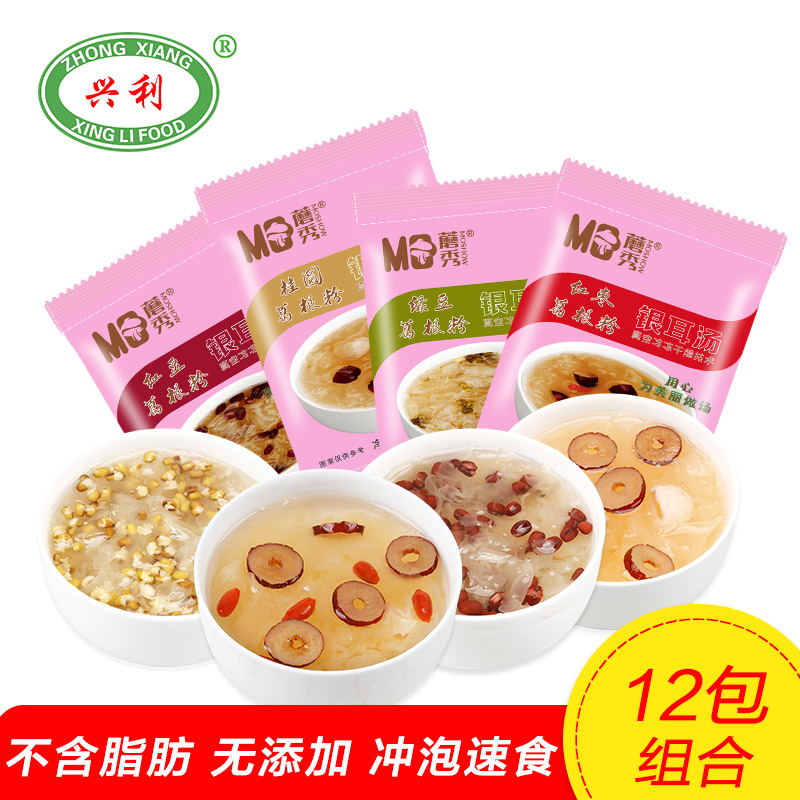 Невареный сублимированный суп из белых грибов Xingli, готовый к употреблению беременным женщинам поколение Десерты красный Суп из мармелада пуэрария с тремеллой 15 г * 12 пакет
